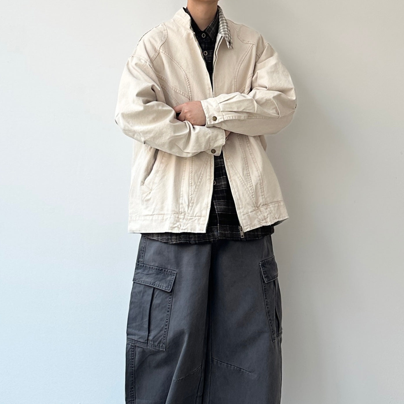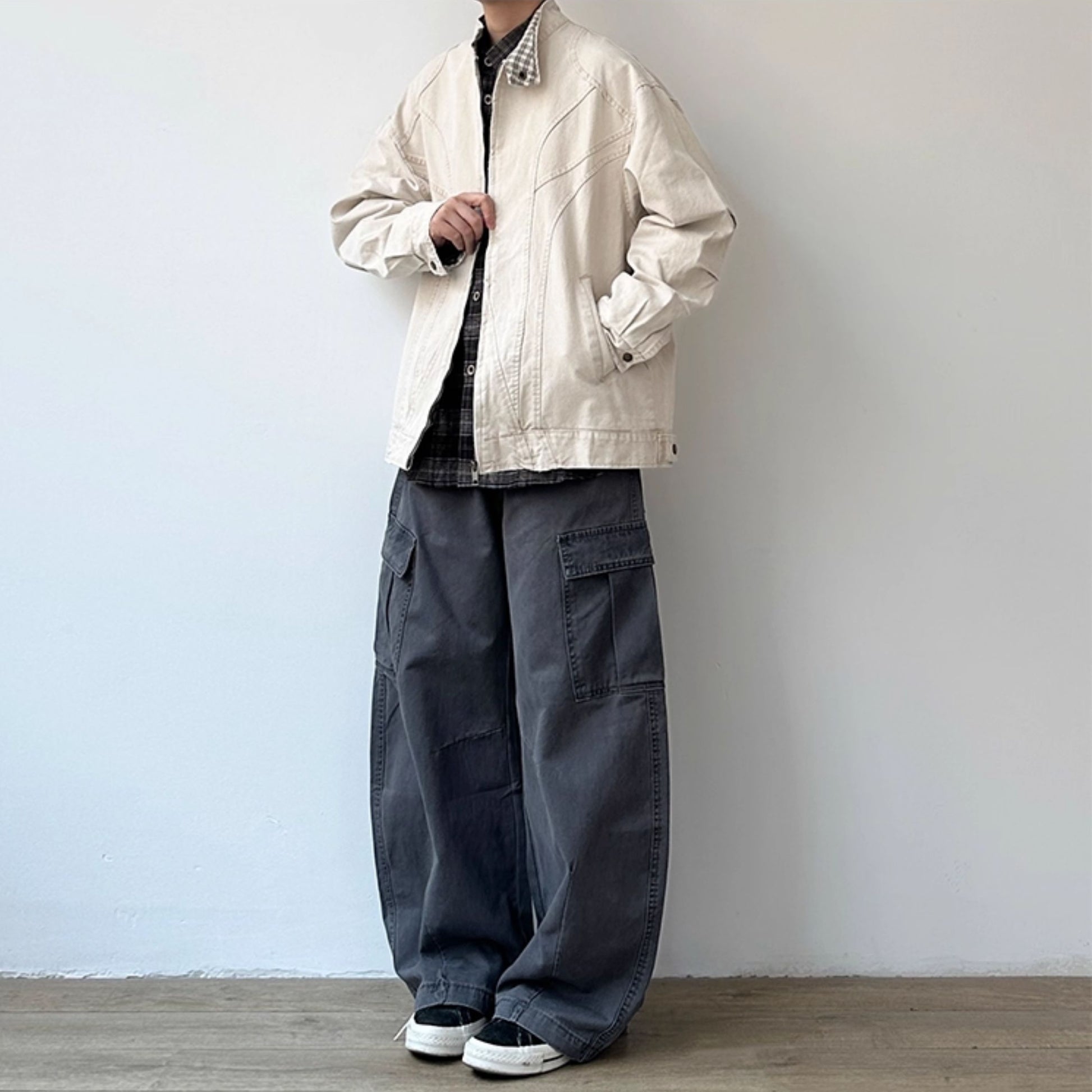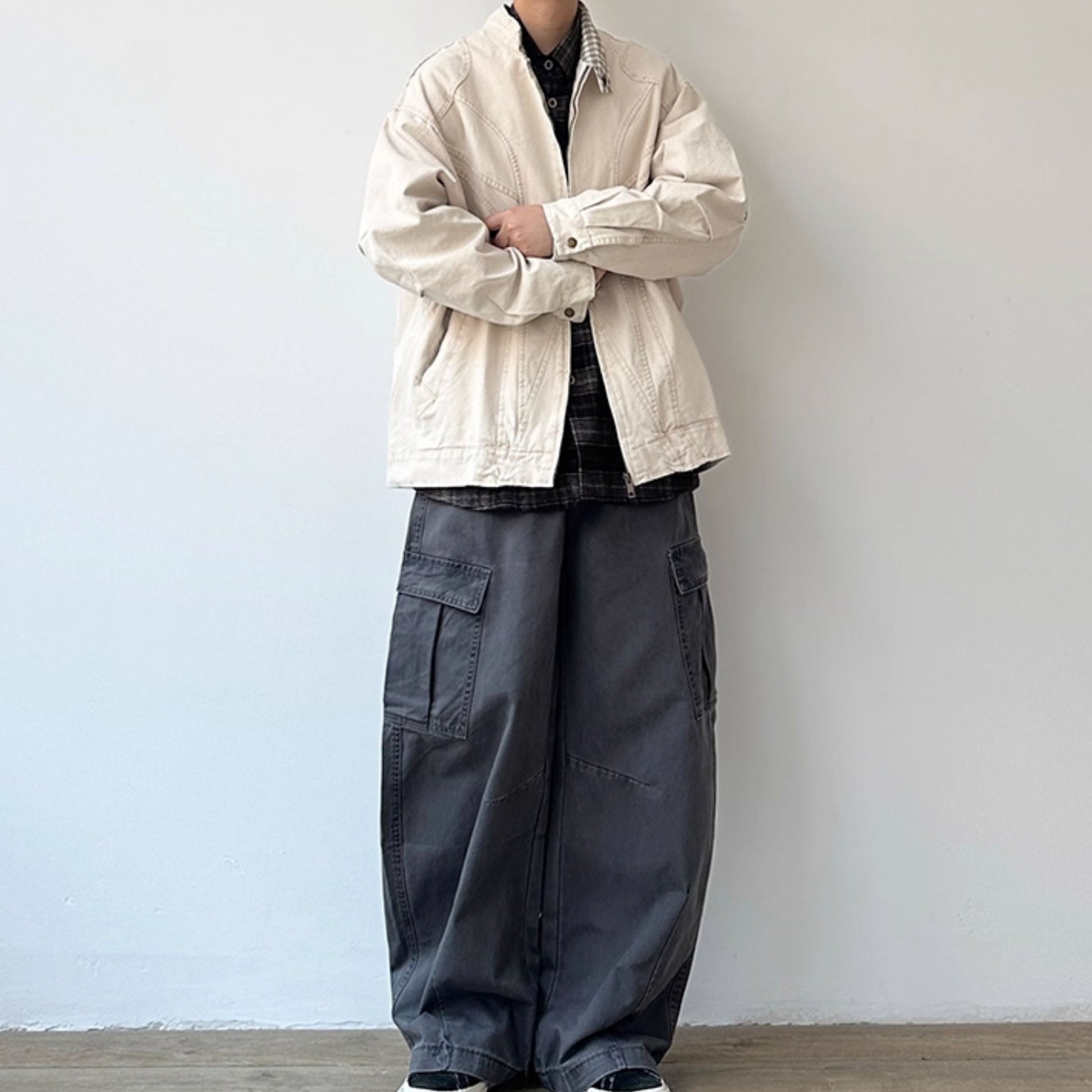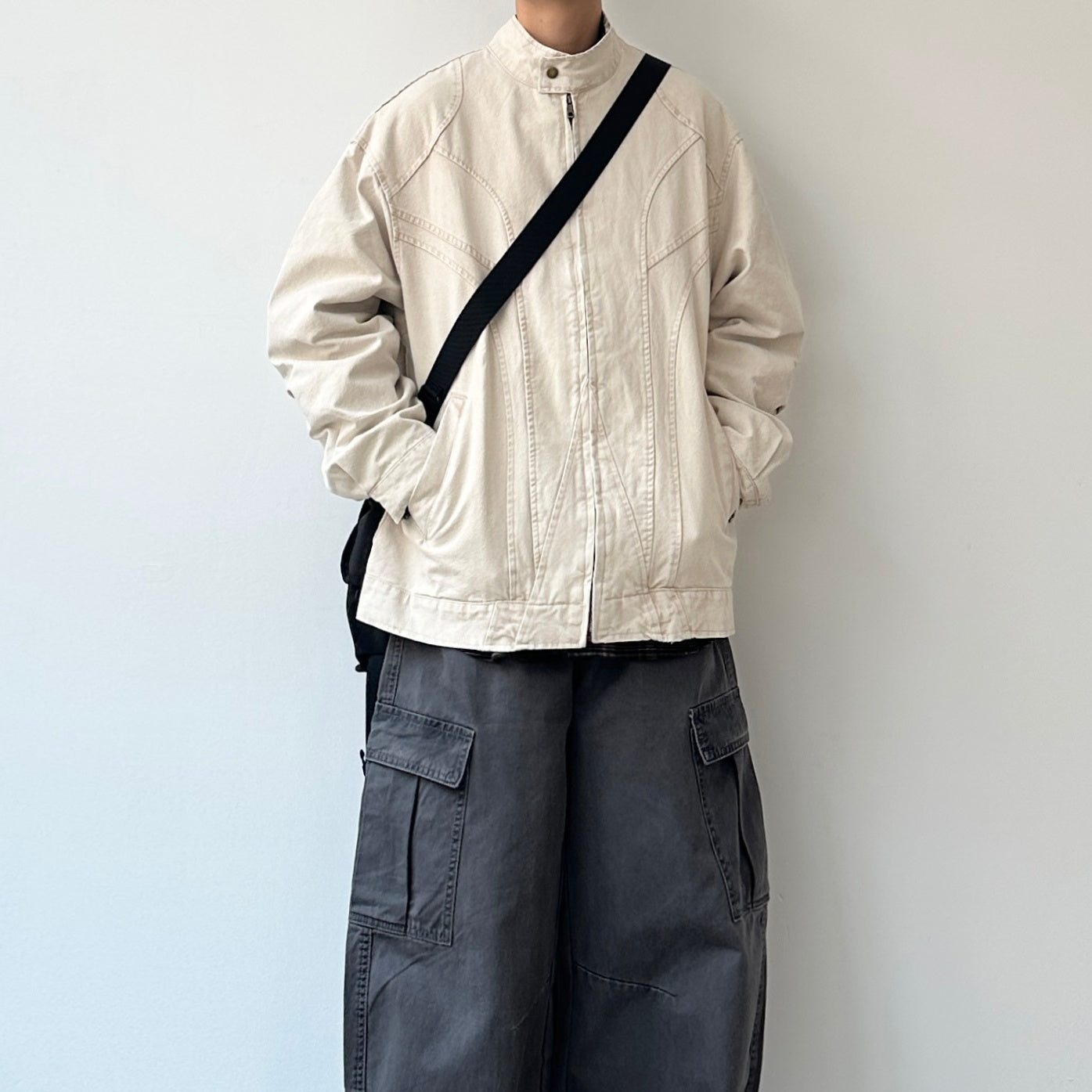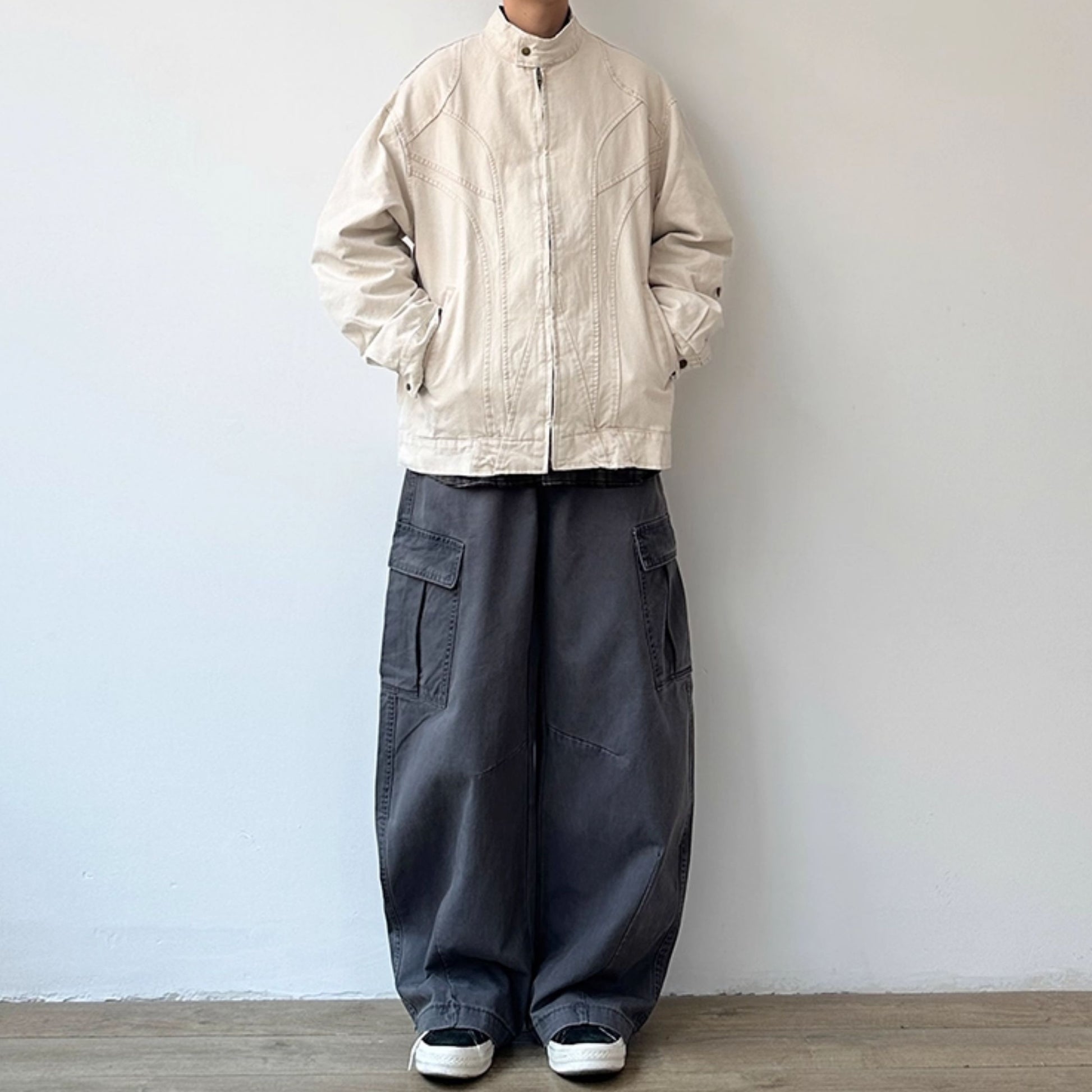 シャツやカーゴパンツと合わせて、肩の力を抜いた日常スタイルに仕上がります。