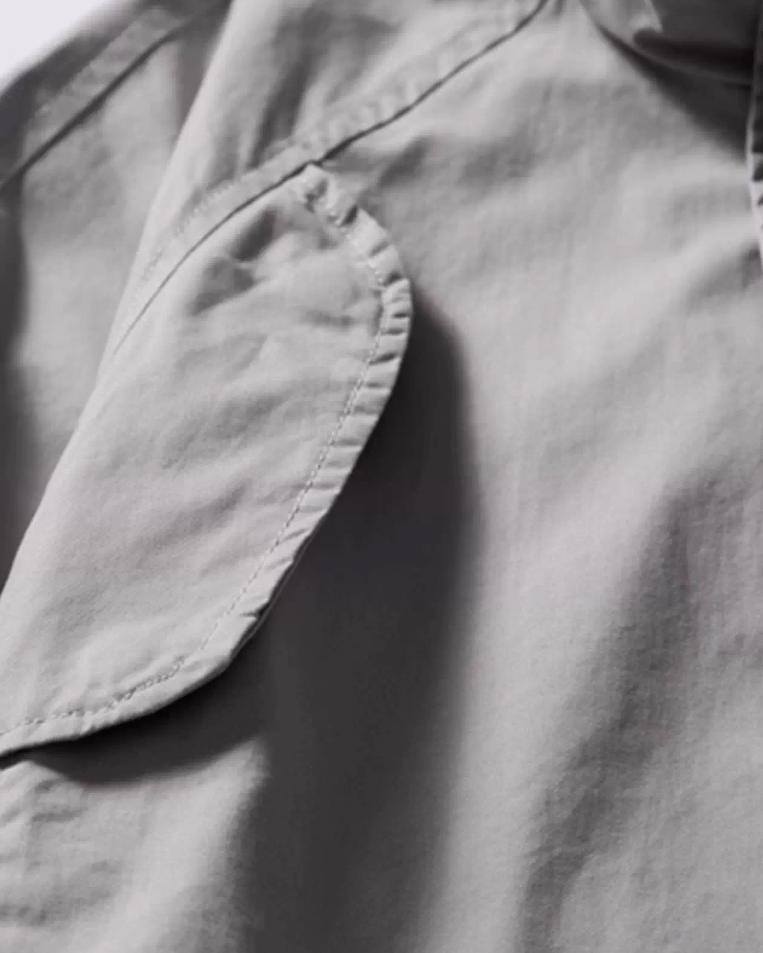 肩の切り替えがさりげなく表情を足し、前は開けても閉めてもバランス良く決まります。