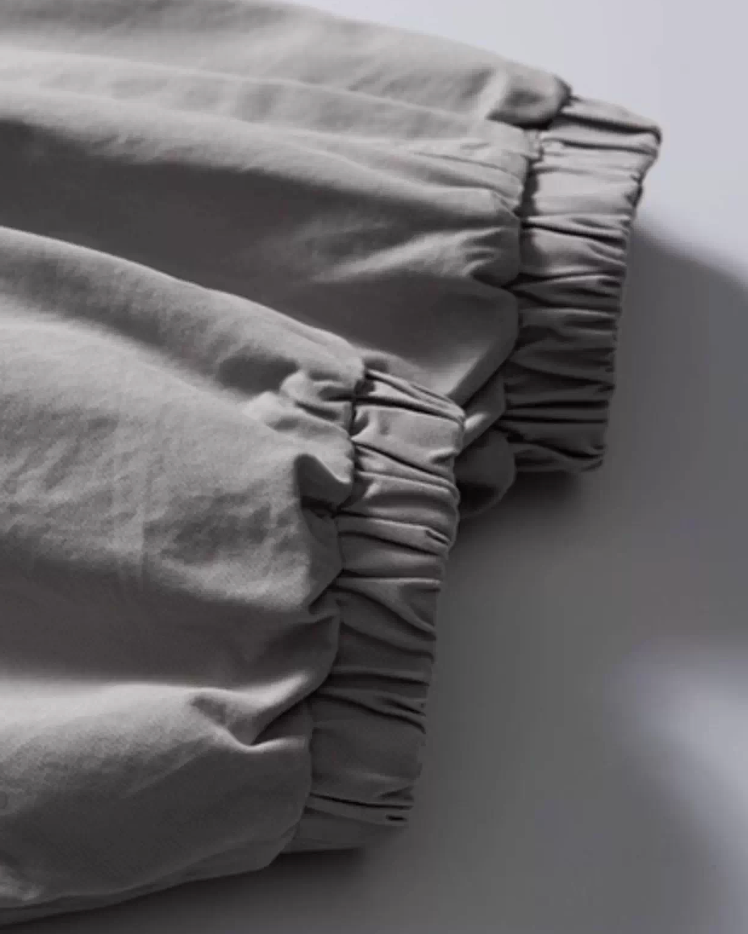 ゆったり身幅と裾のゴムでふわりと膨らみ、軽い着心地ながらシルエットにほどよいメリハリ。