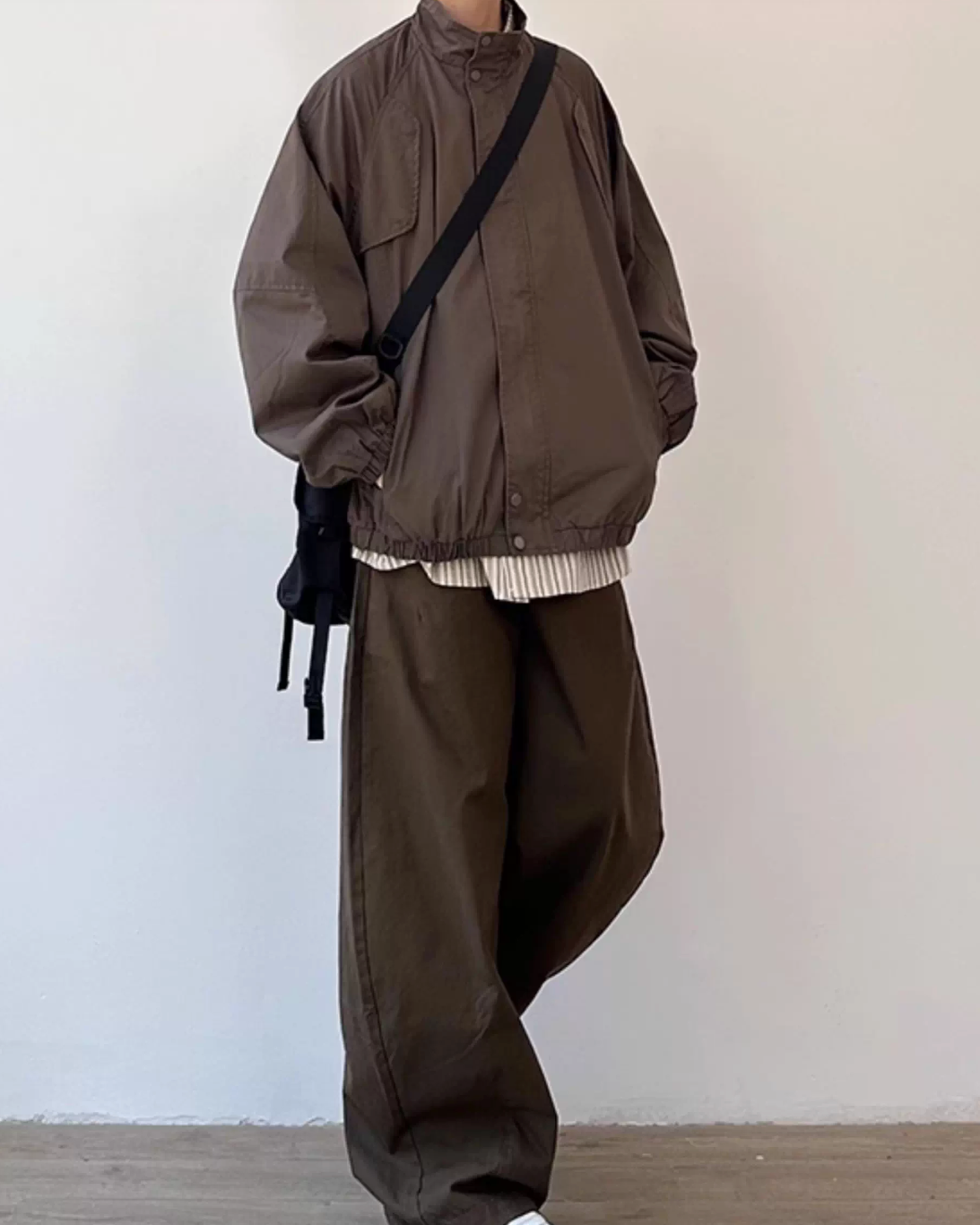 スタンドカラーとラグランの丸みが映える、短丈ジップブルゾン。