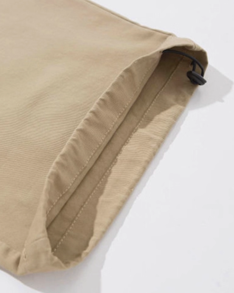 ゴムウエストとドローコードで安定し、ラフ過ぎない抜け感。