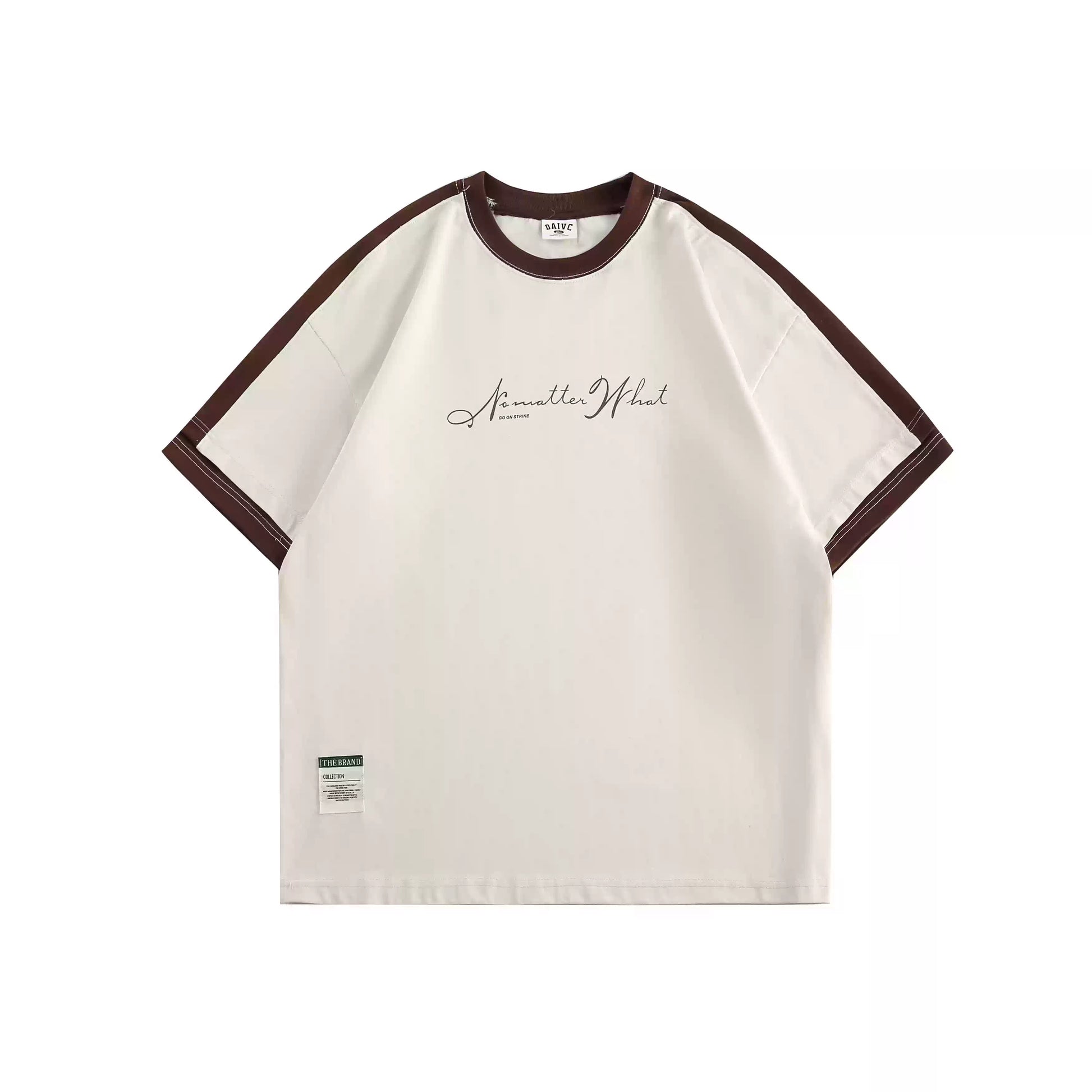 Two-Tone Sleeve Logo Print Short Sleeve T-Shirt N0757
