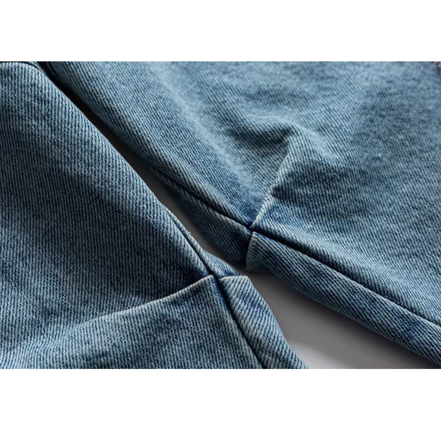 淡いフェード感とさりげないダメージが、肩ひじ張らない抜け感を演出。