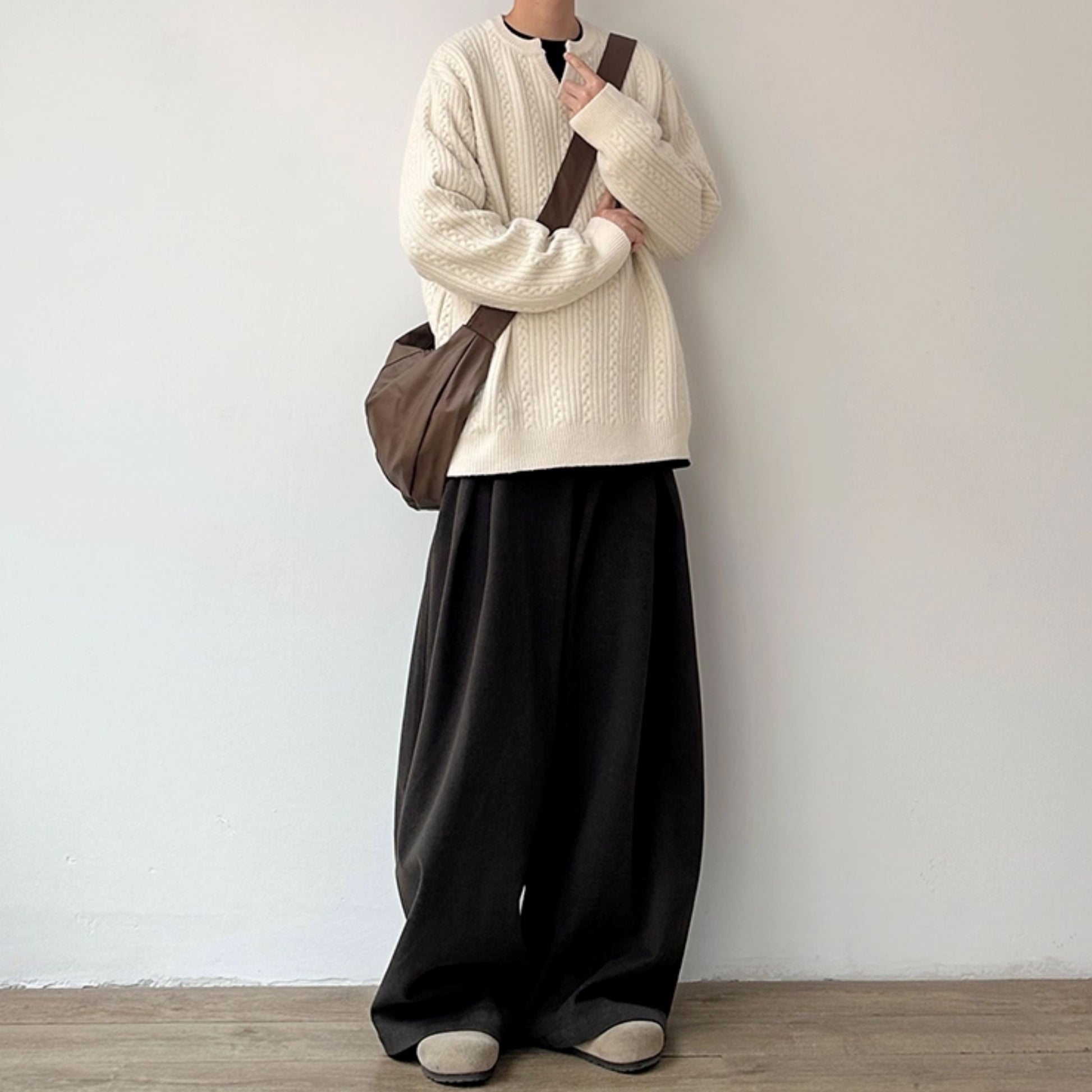均一に並ぶケーブル編みが印象を整えるニットセーターです。