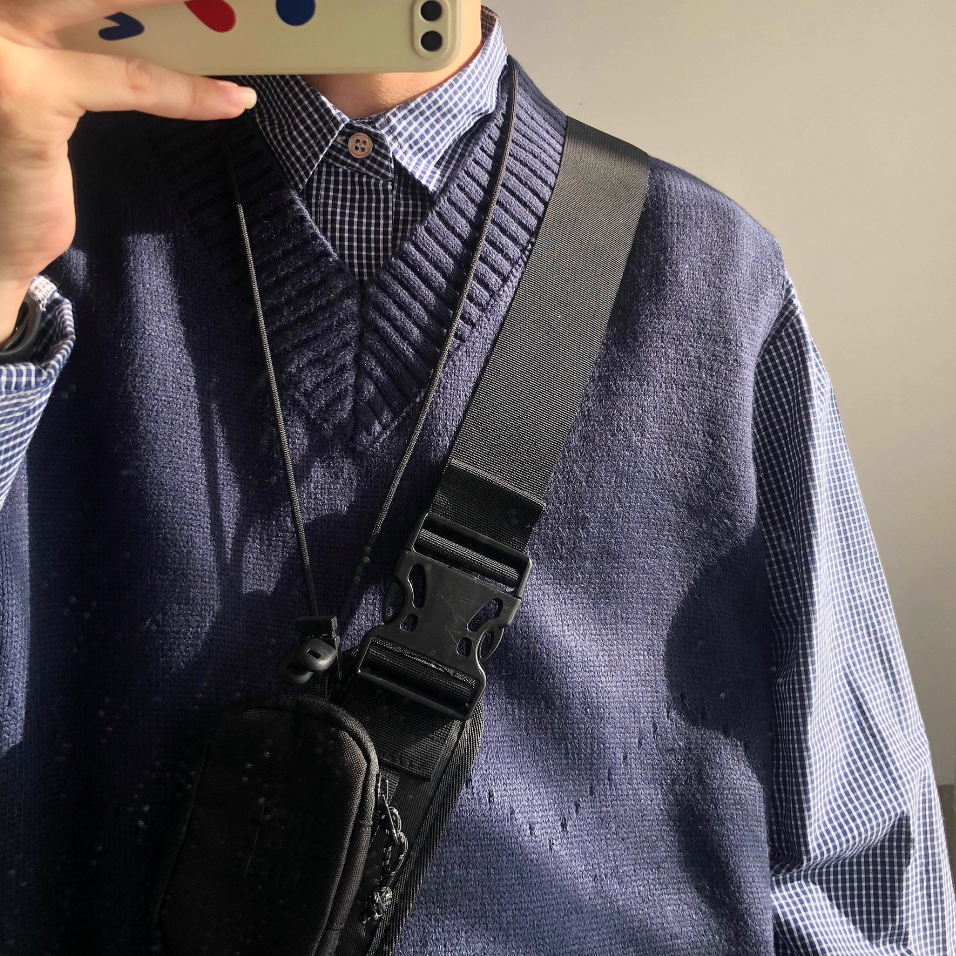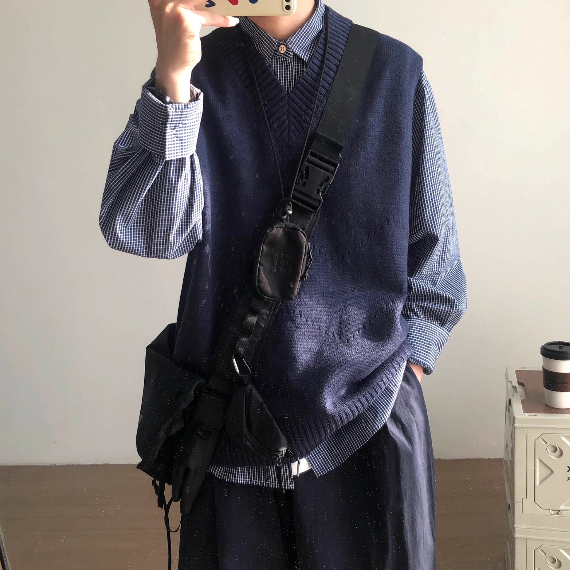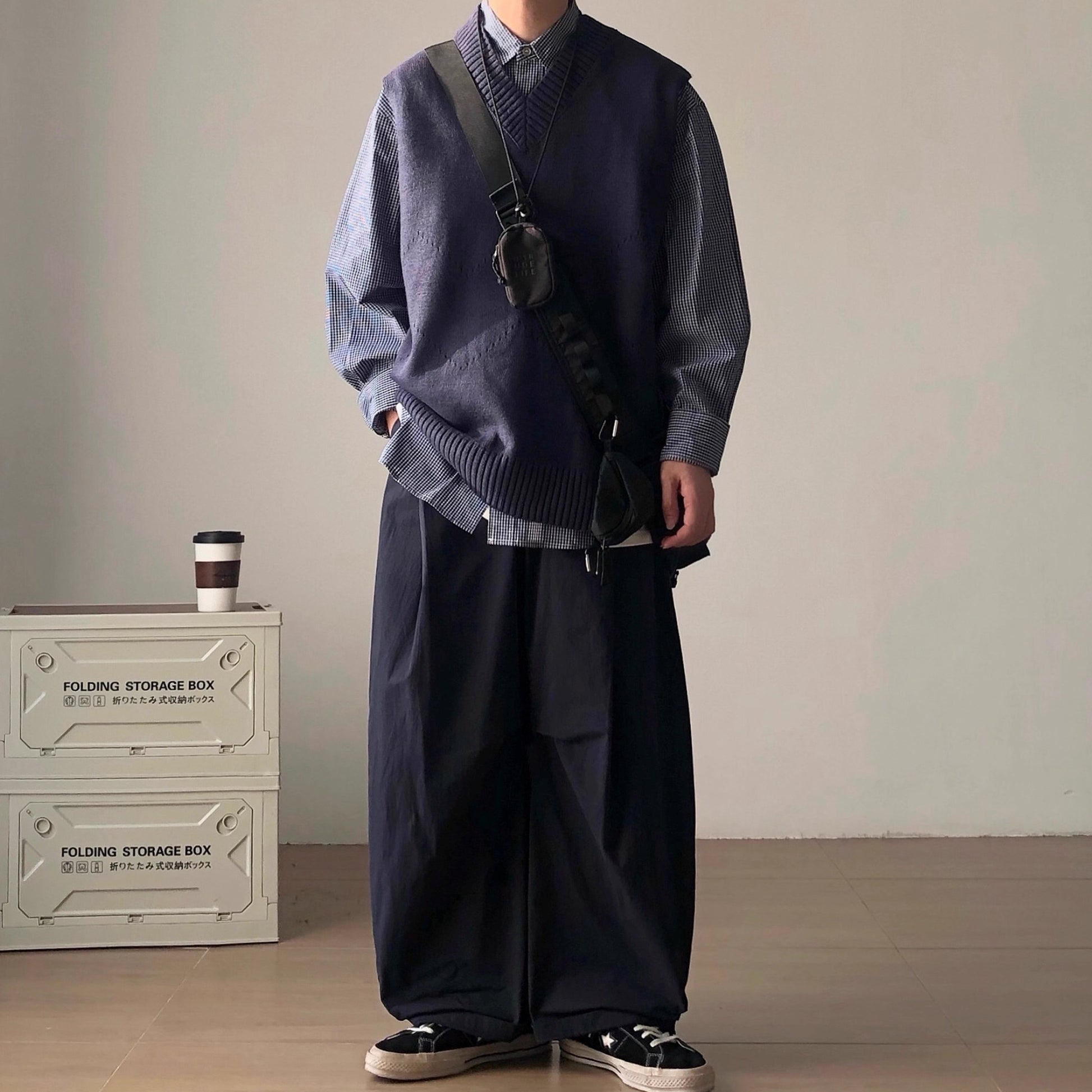 シャツやカットソーの上に重ねるだけで、ラフさの中に落ち着いた雰囲気が生まれます。