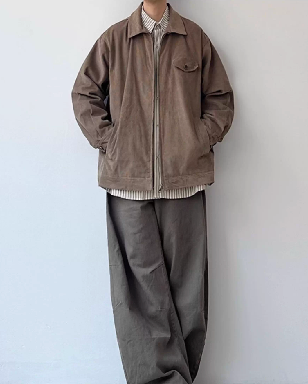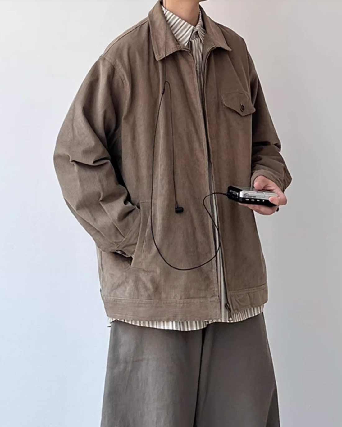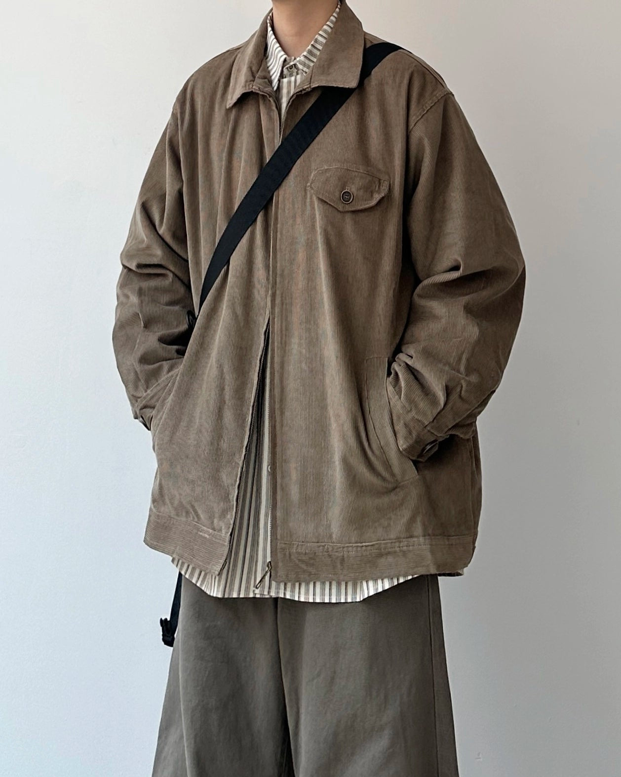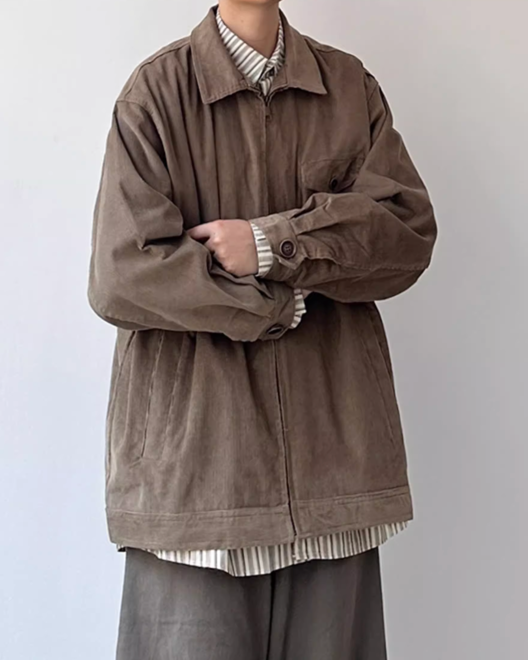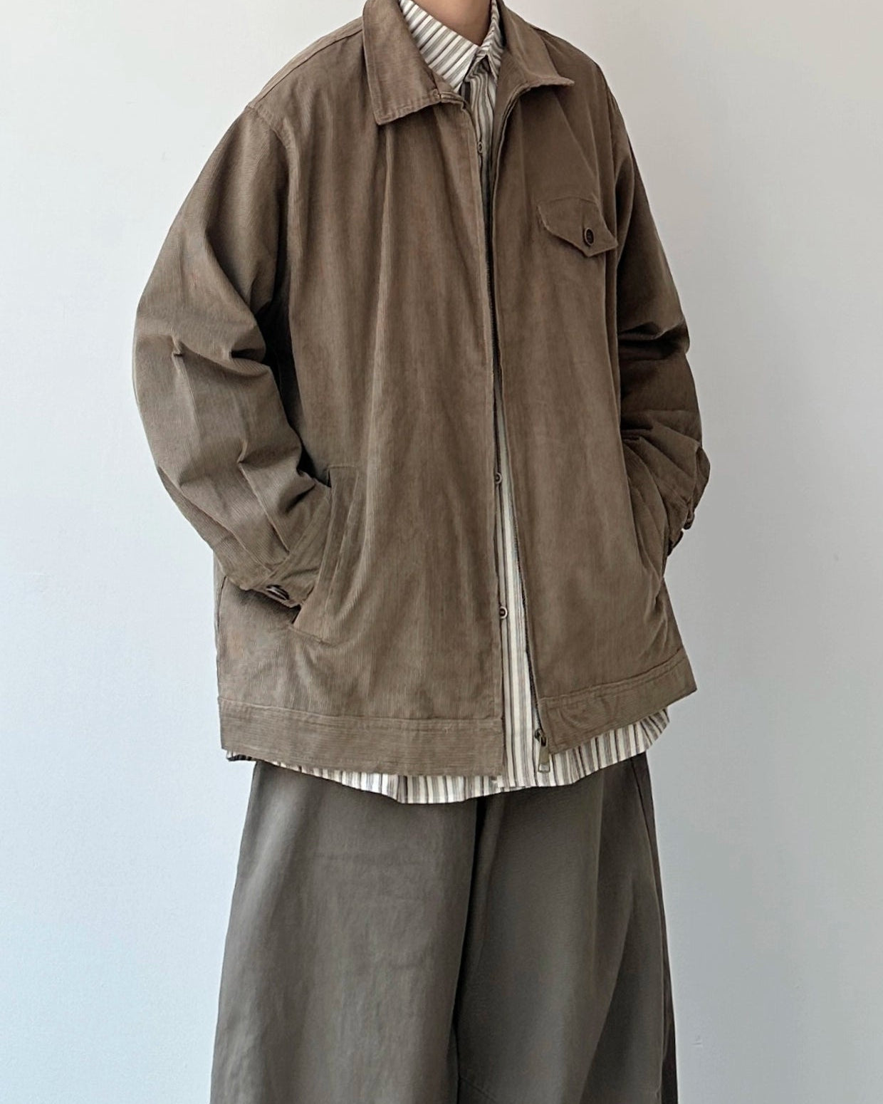 直線的なラインとゆとりあるシルエットが特徴のジップジャケットです。
