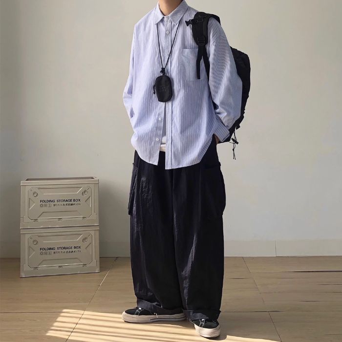 Striped Loose Long Sleeve Shirt N0505