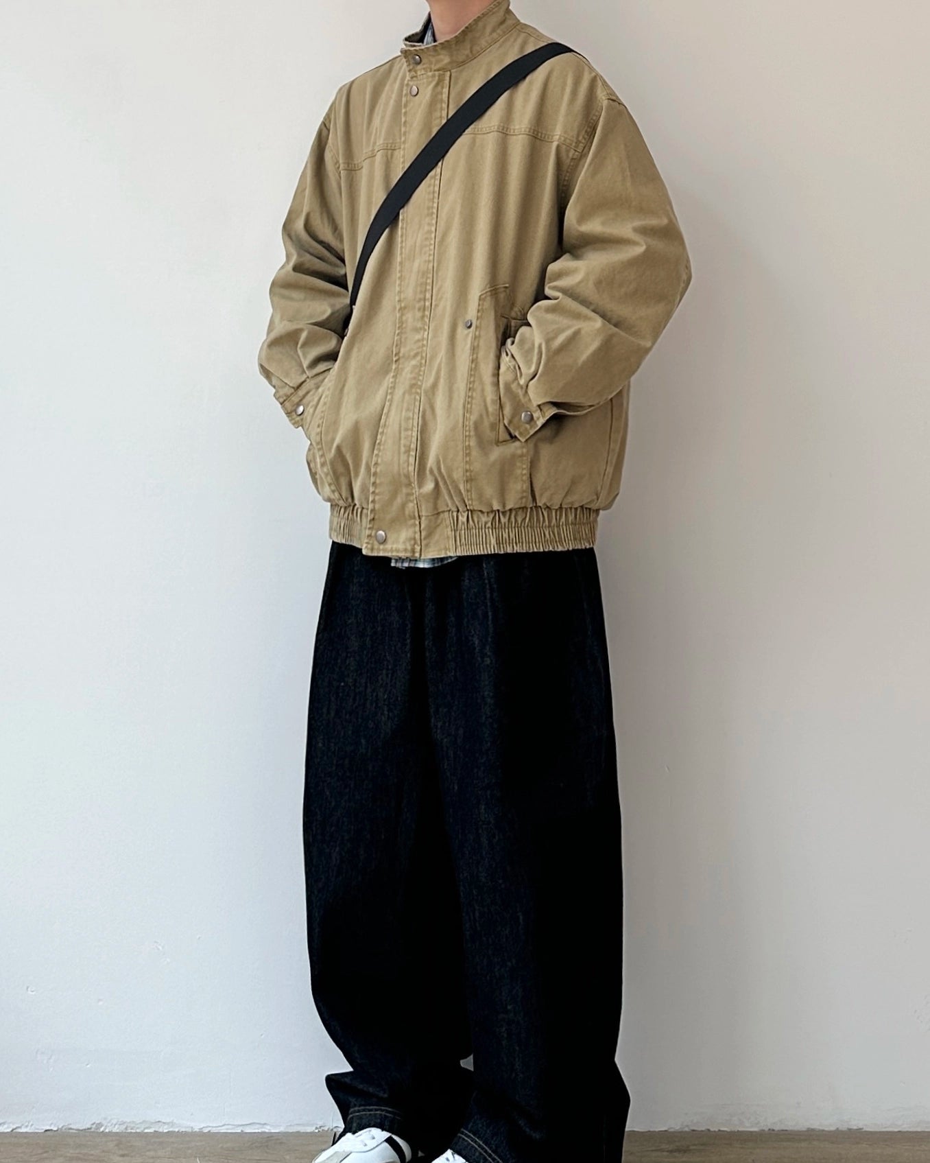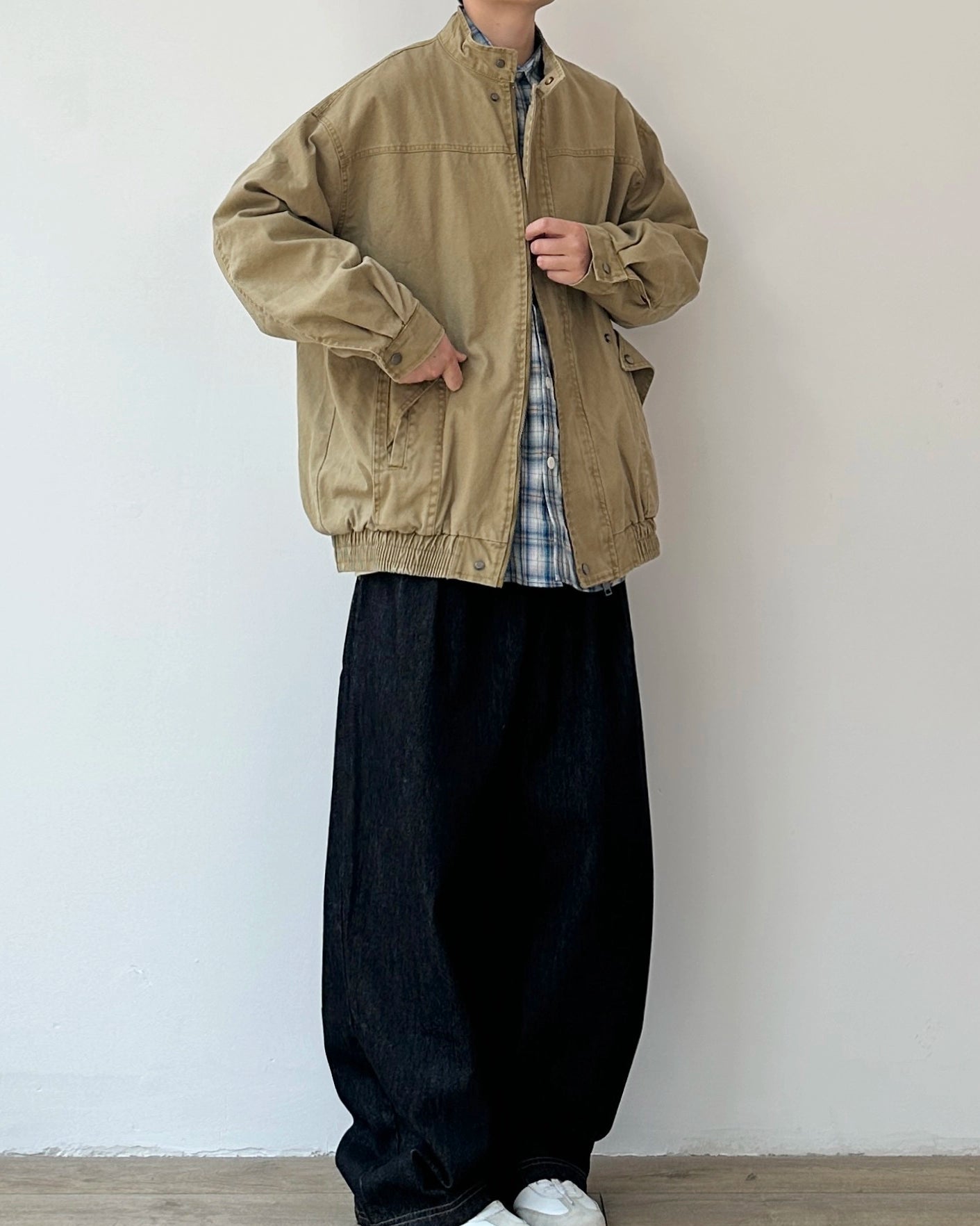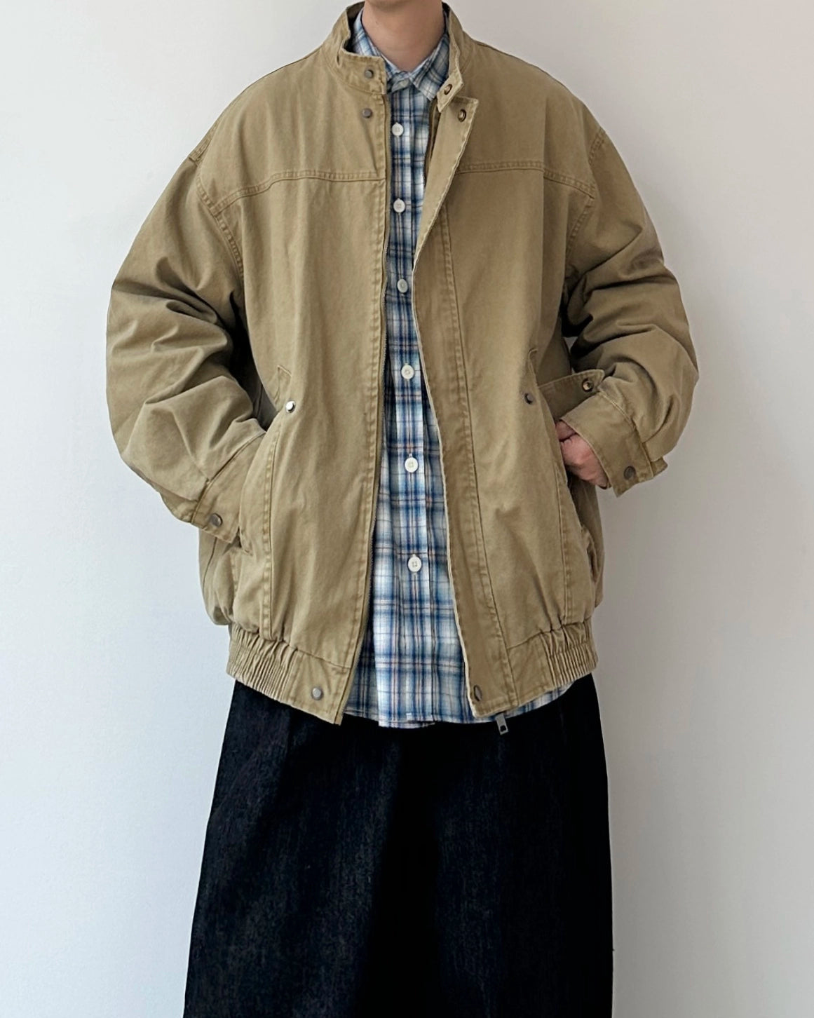 デニムやワイドパンツ、チェックシャツとも相性良く、日常の羽織りとして使いやすい一着です。