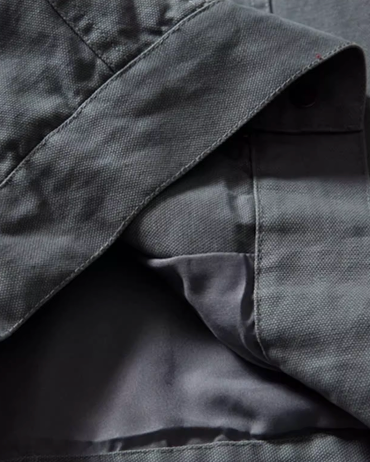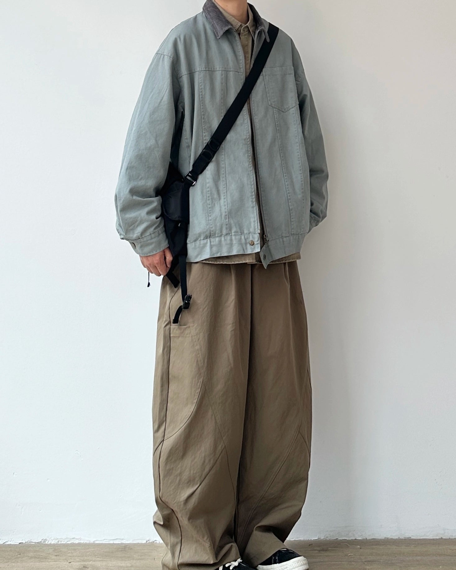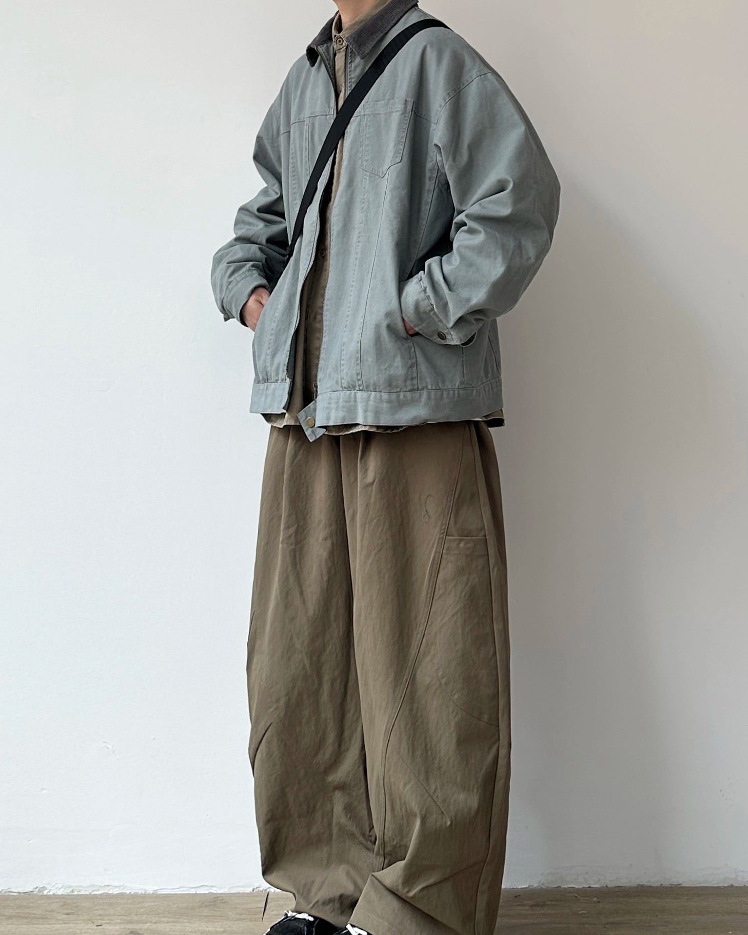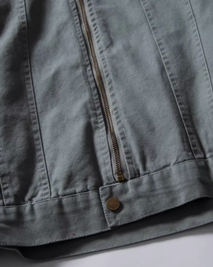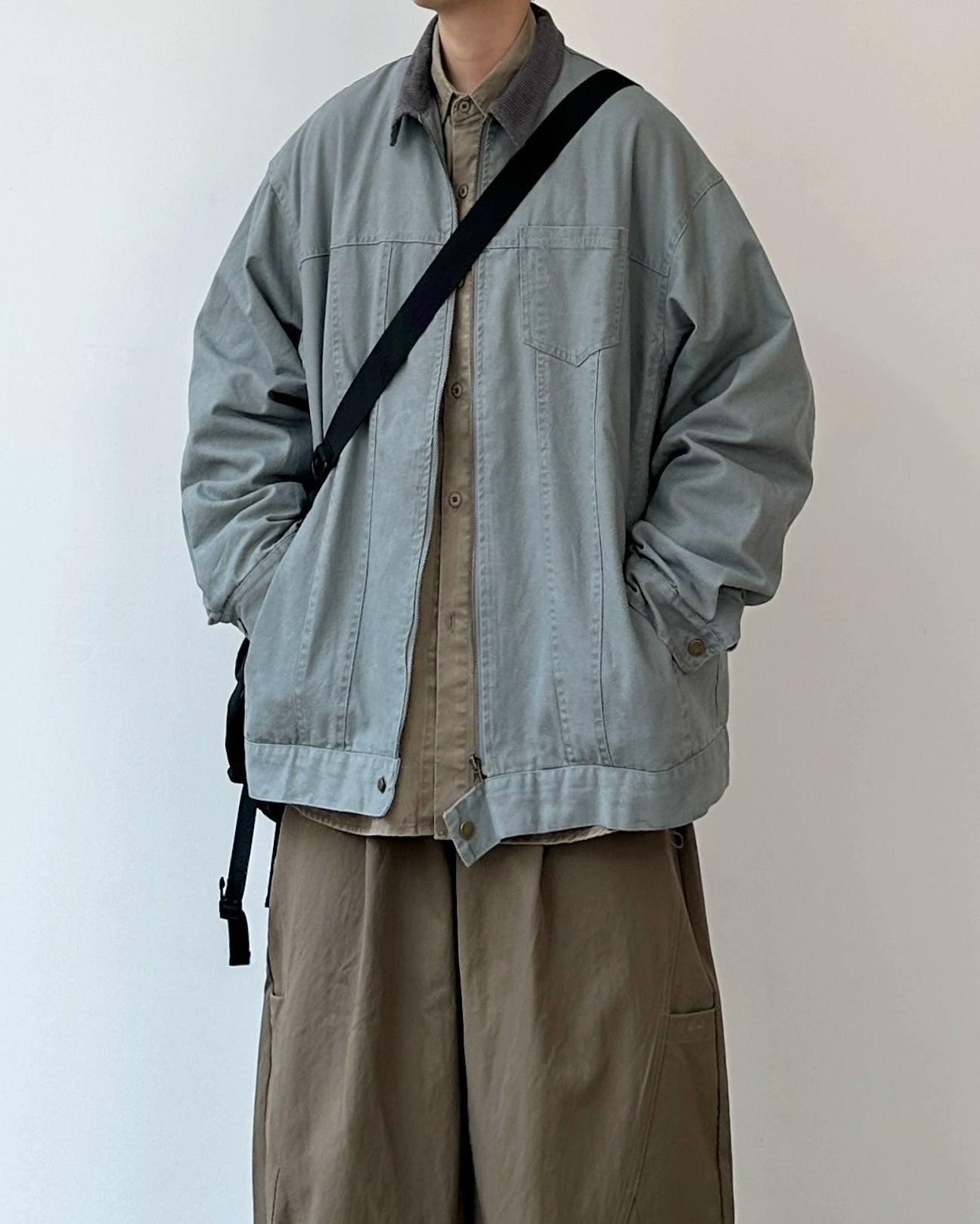 落ち着いたトーンにコーデュロイの衿を添えたジップジャケット。