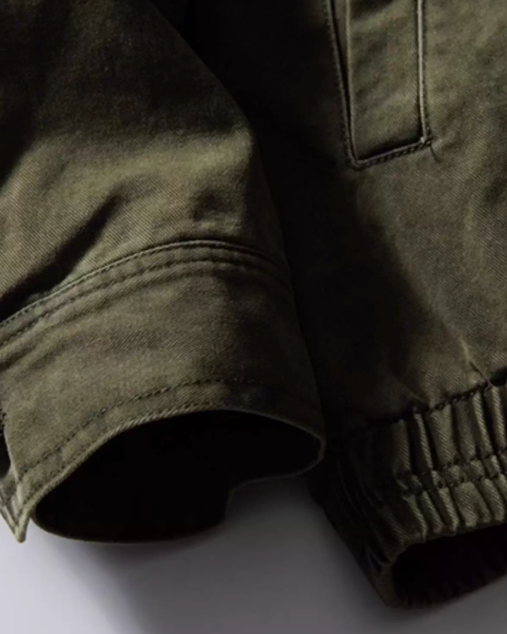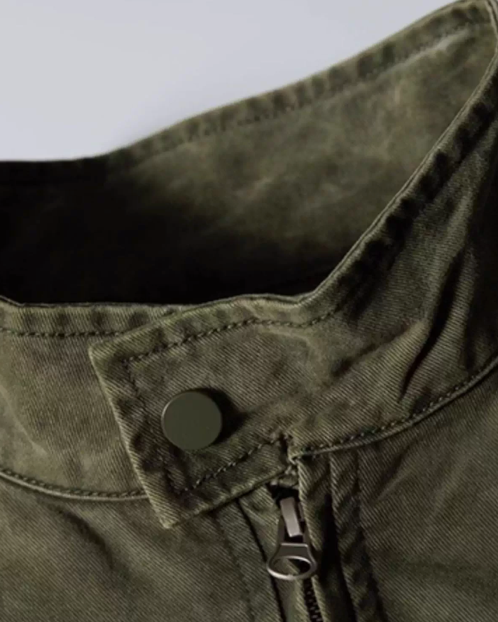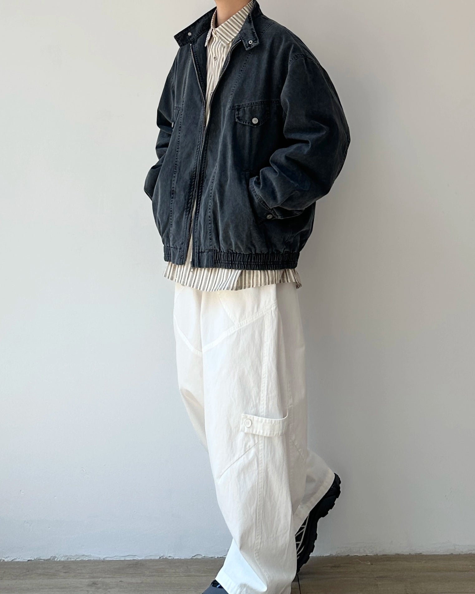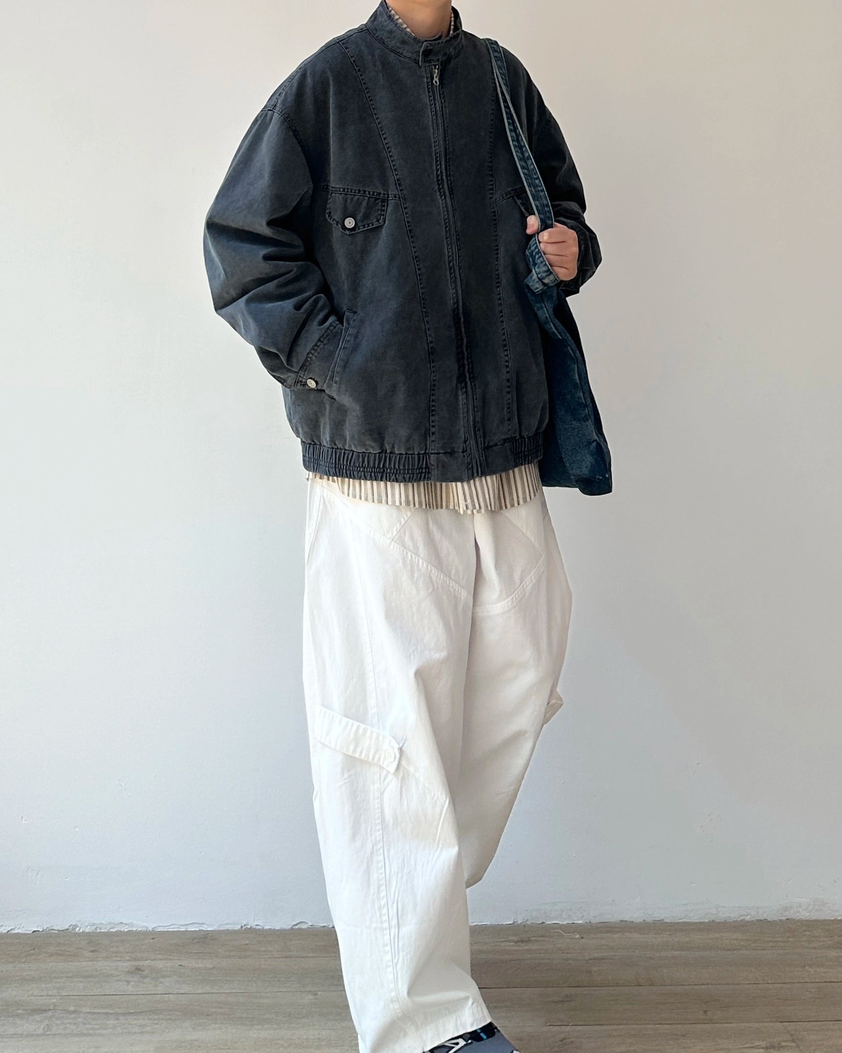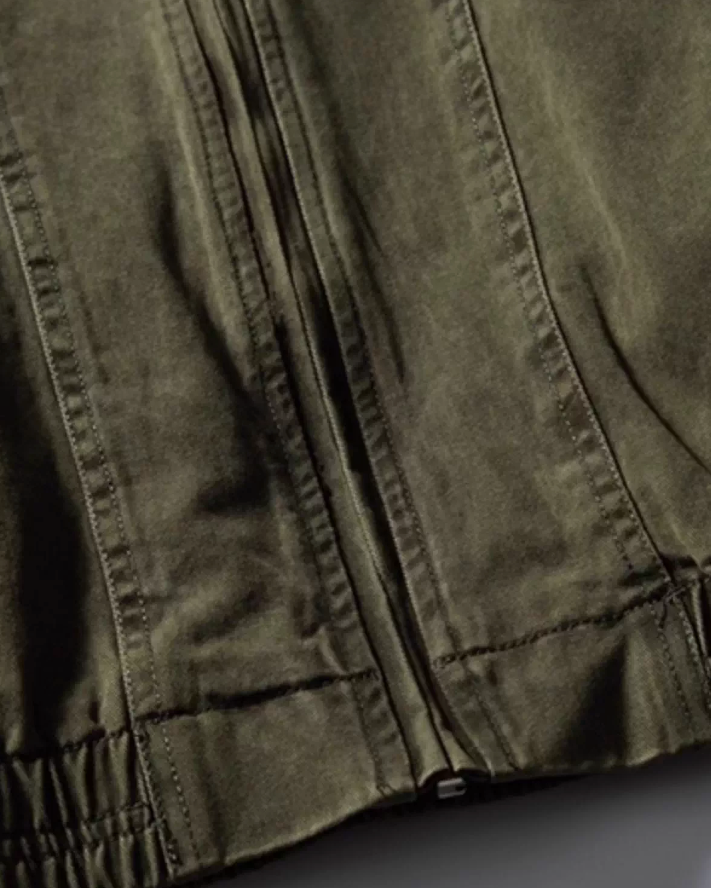 ほんのりフェードした表情のジップブルゾン。