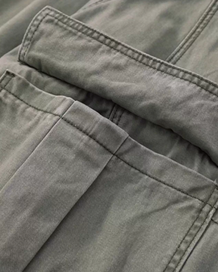 ゆったりと広がるワイドシルエットに、特徴的な切り替えラインが映えるカーゴパンツ。