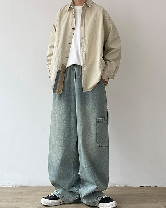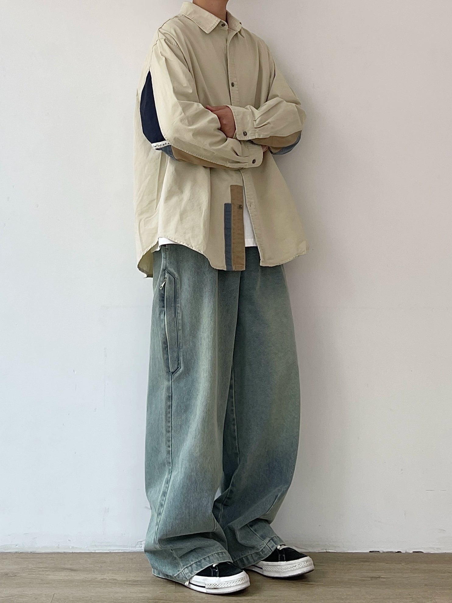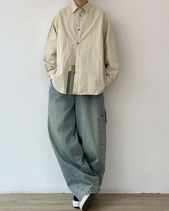 Retro Splice Long-Sleeve Casual Shirt N0630