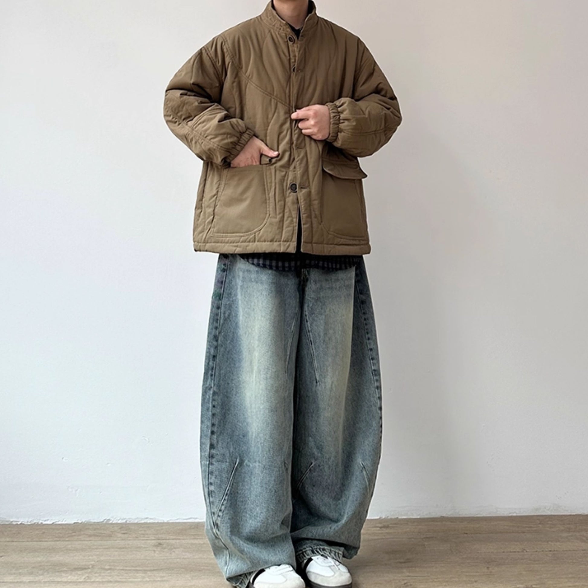 ふっくらとしたシルエットとステッチラインが印象的なジャケットです。