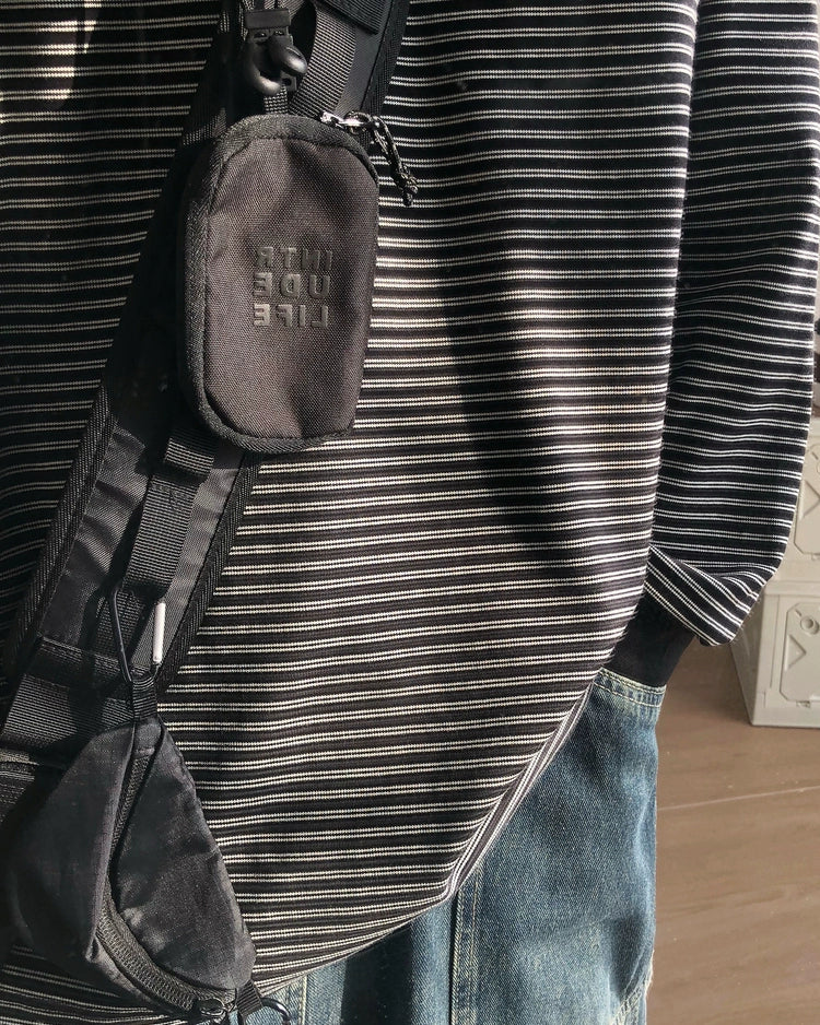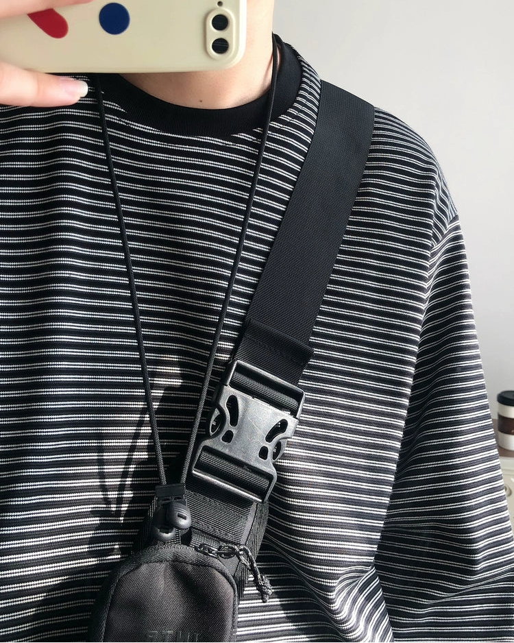 細かなボーダー柄がアクセントになったロングスリーブTシャツです。
