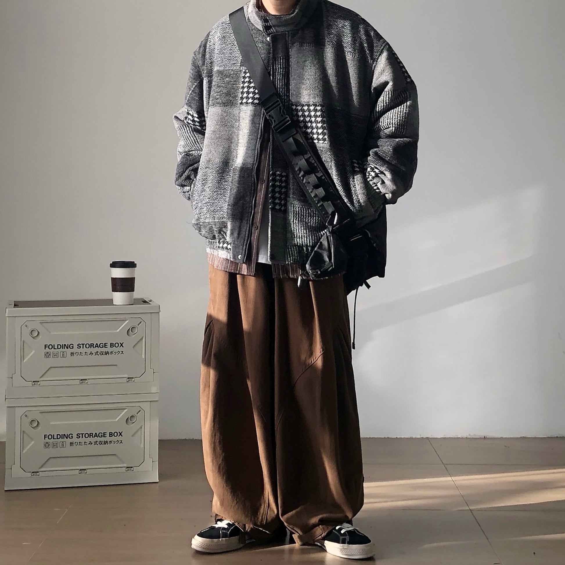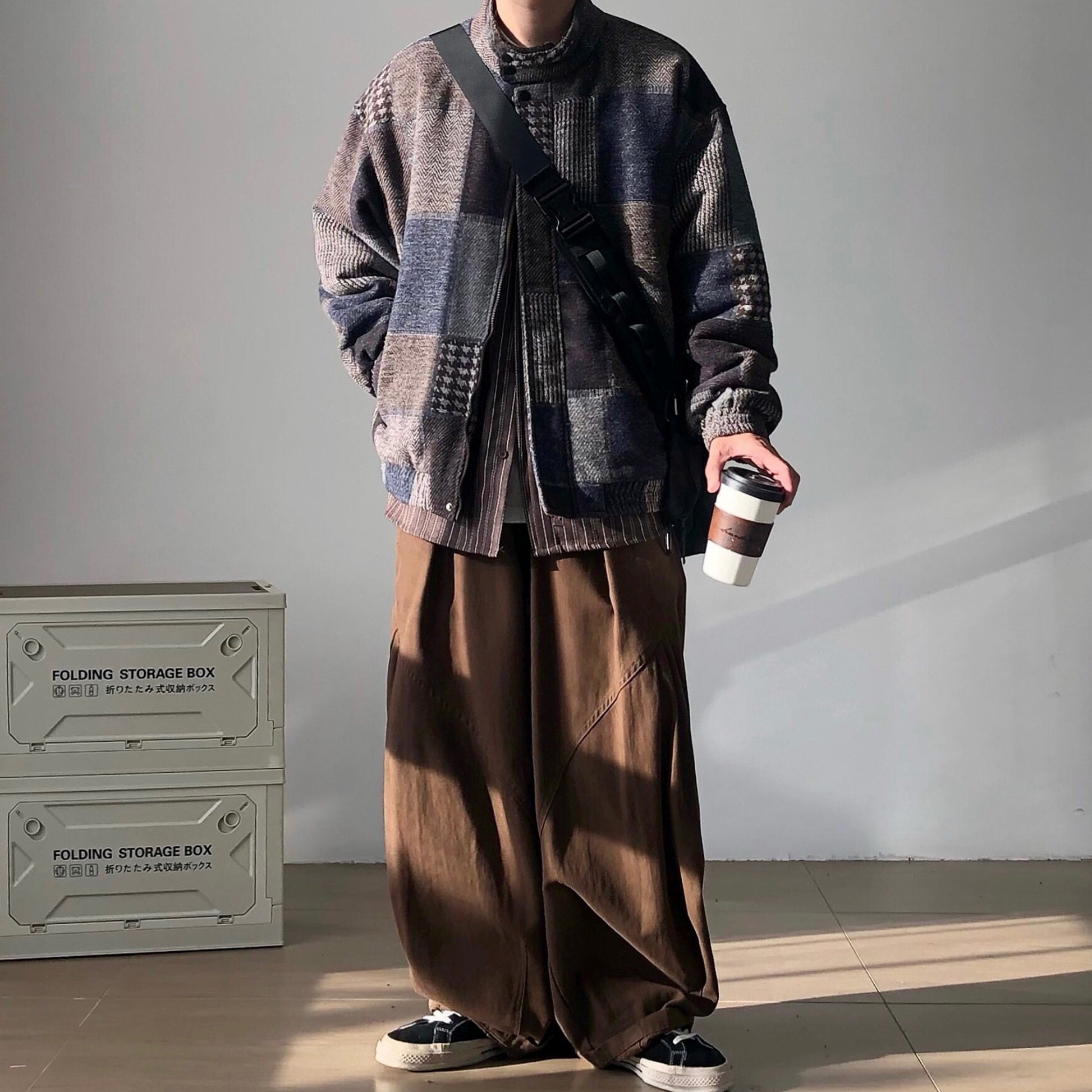 ワイドパンツやスウェットともバランスが取りやすく、ラフに羽織るだけでまとまる一着です。
