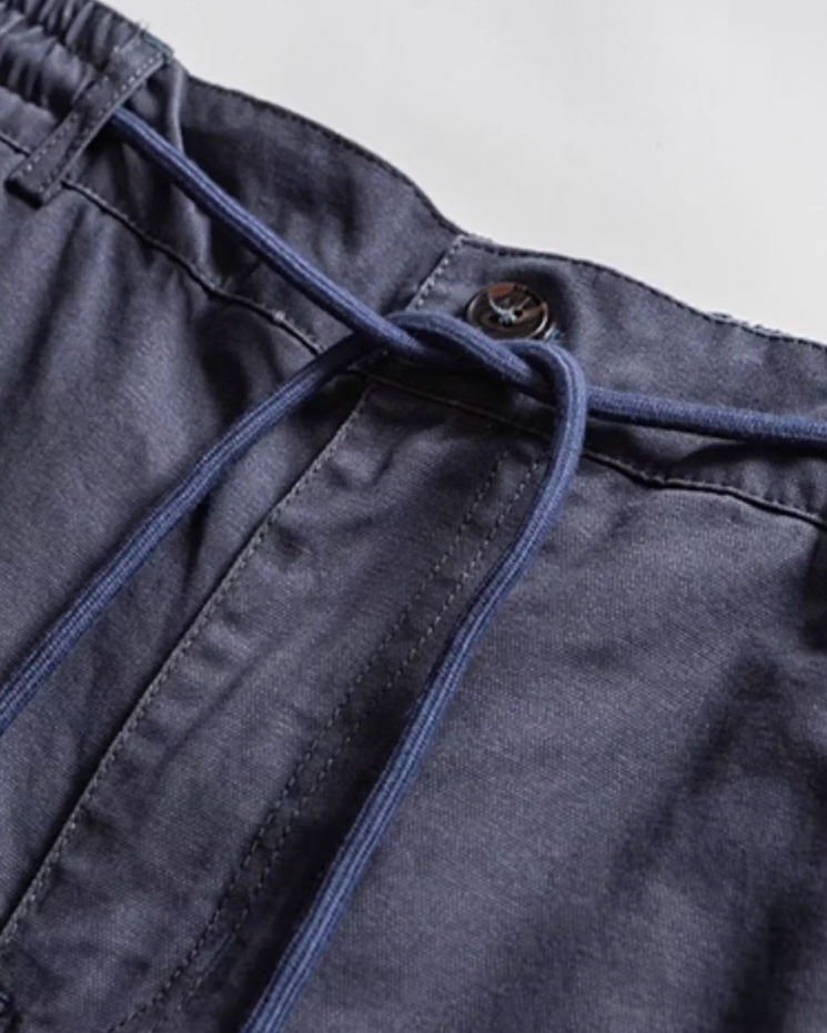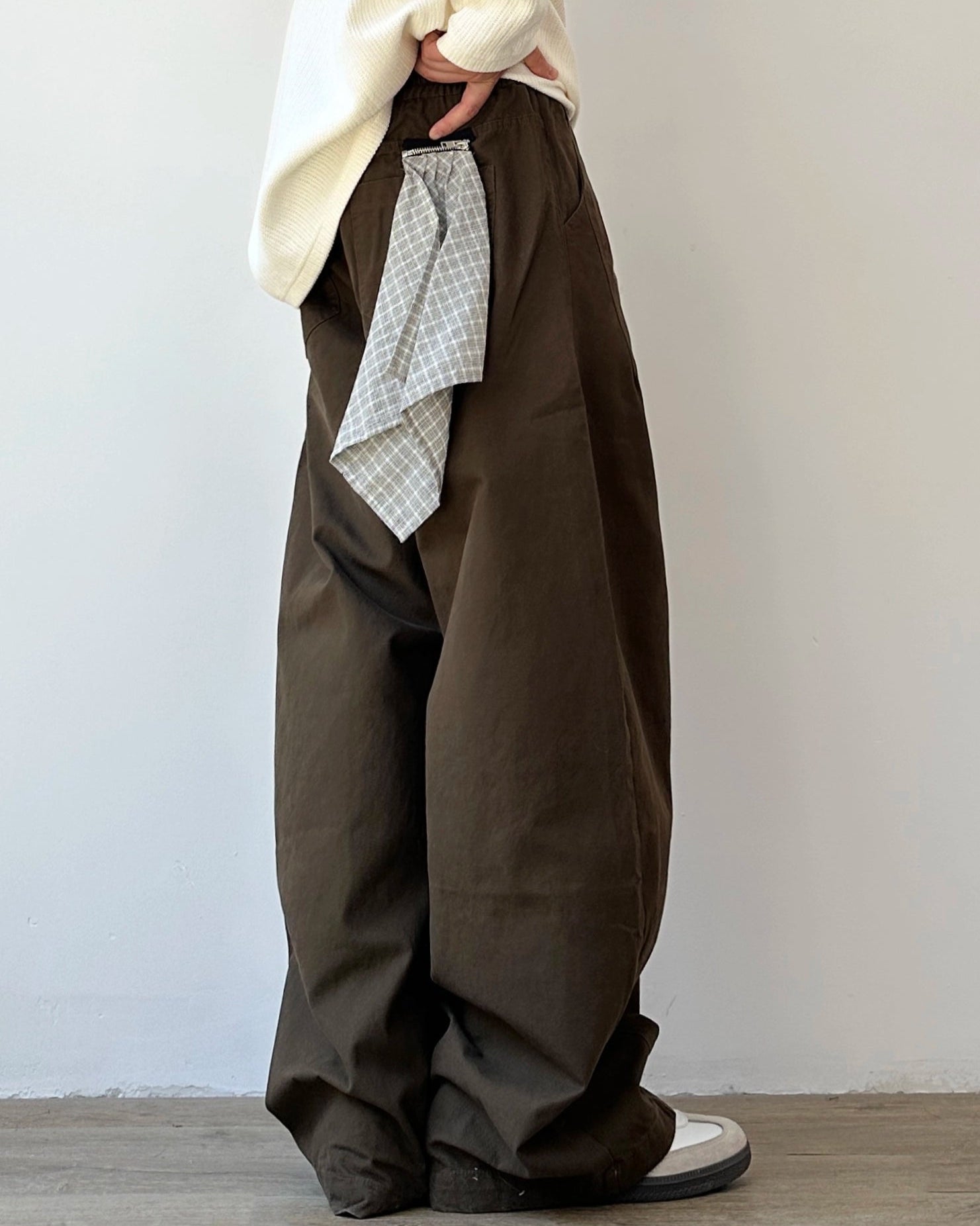 ウエストはゴム+ドローで楽に穿け、軽やかな生地が脚に沿ってゆるく落ちます。