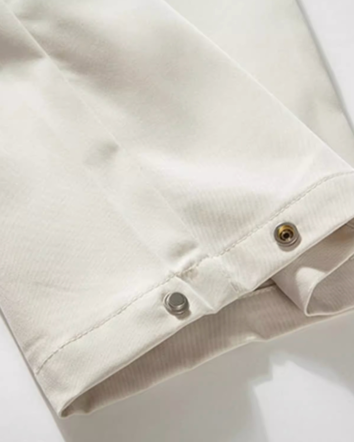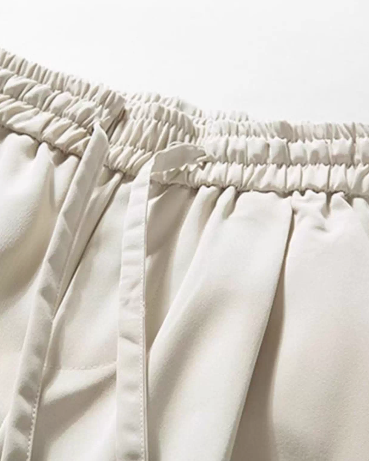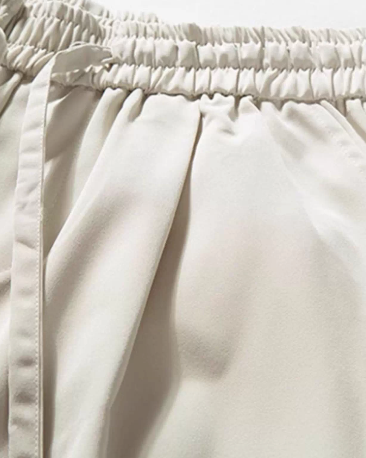 イージーウエストとドローコードで楽に穿け、脚に沿ってすとんと落ちるシルエット。