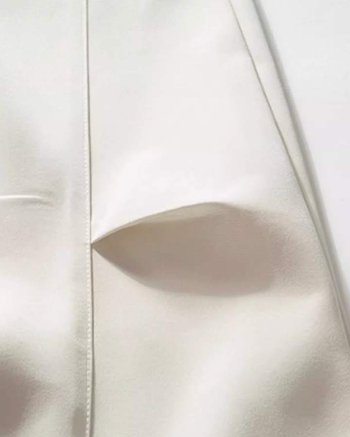 膝の切り替えがさりげなく表情を添え、裾で軽く溜まって抜け感が出ます。