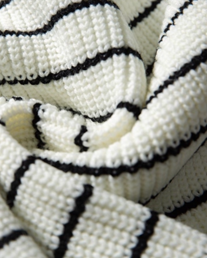 程よくゆとりを持たせたシルエットに、細かなボーダーが映えるニットです。
