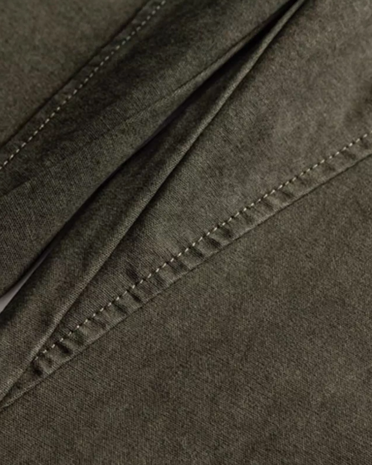ほどよい洗い感が表情を添え、裾でくしゅっと溜まる抜け感が軽やか。