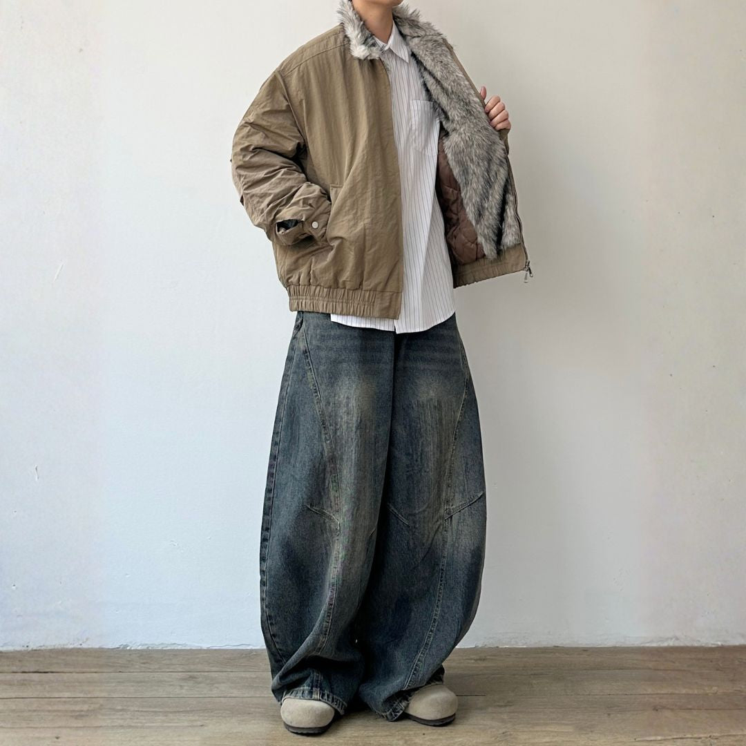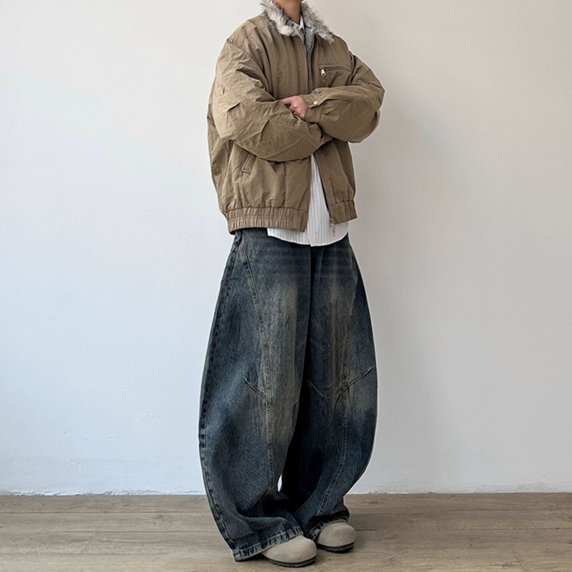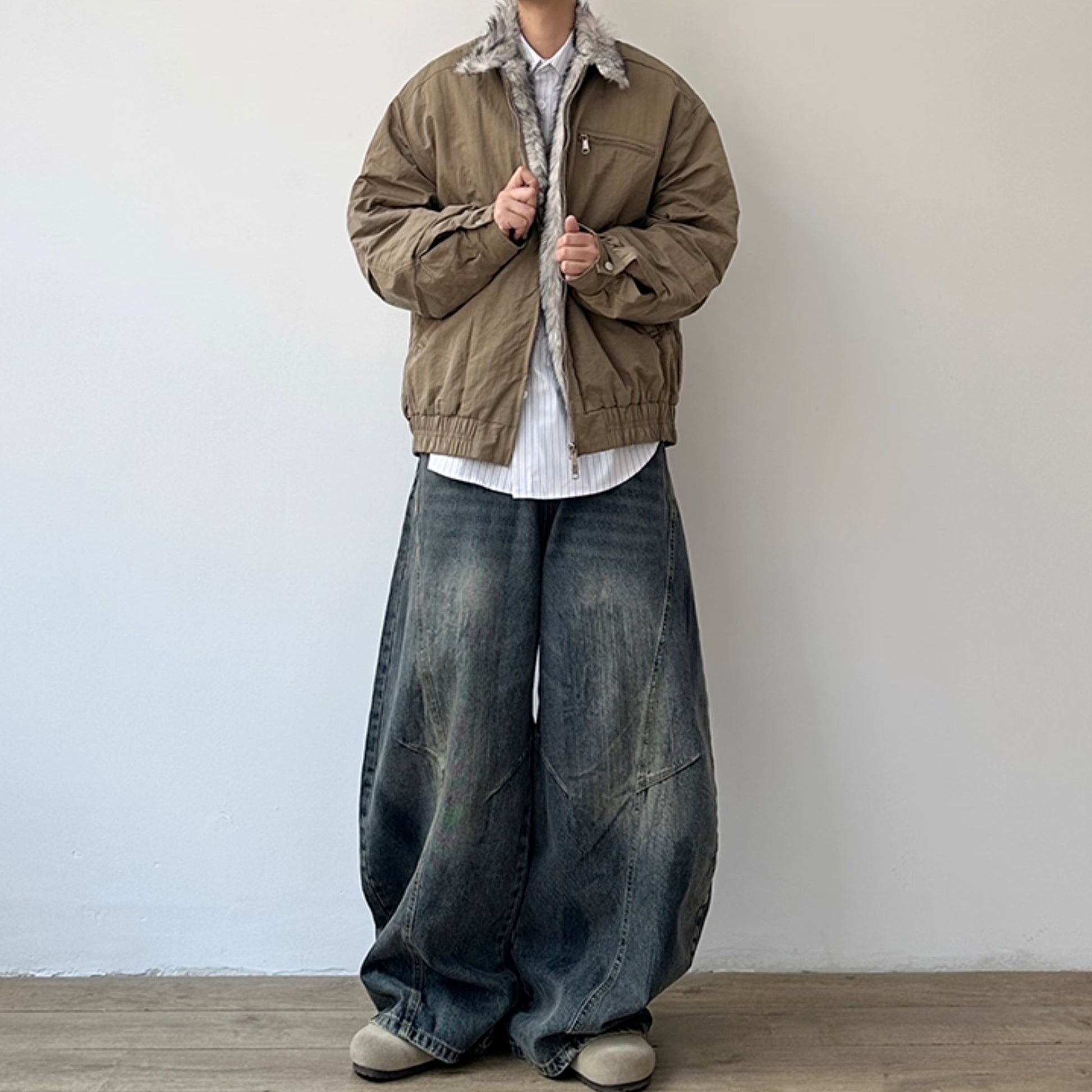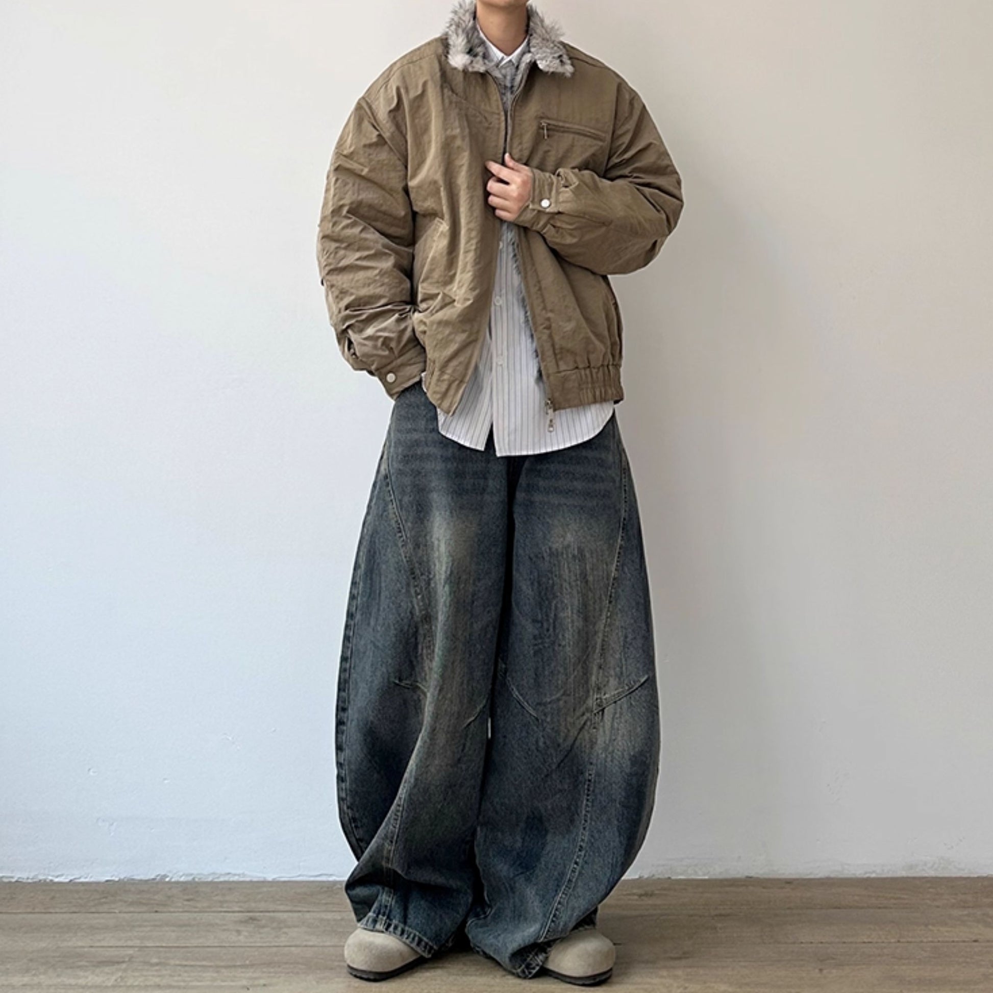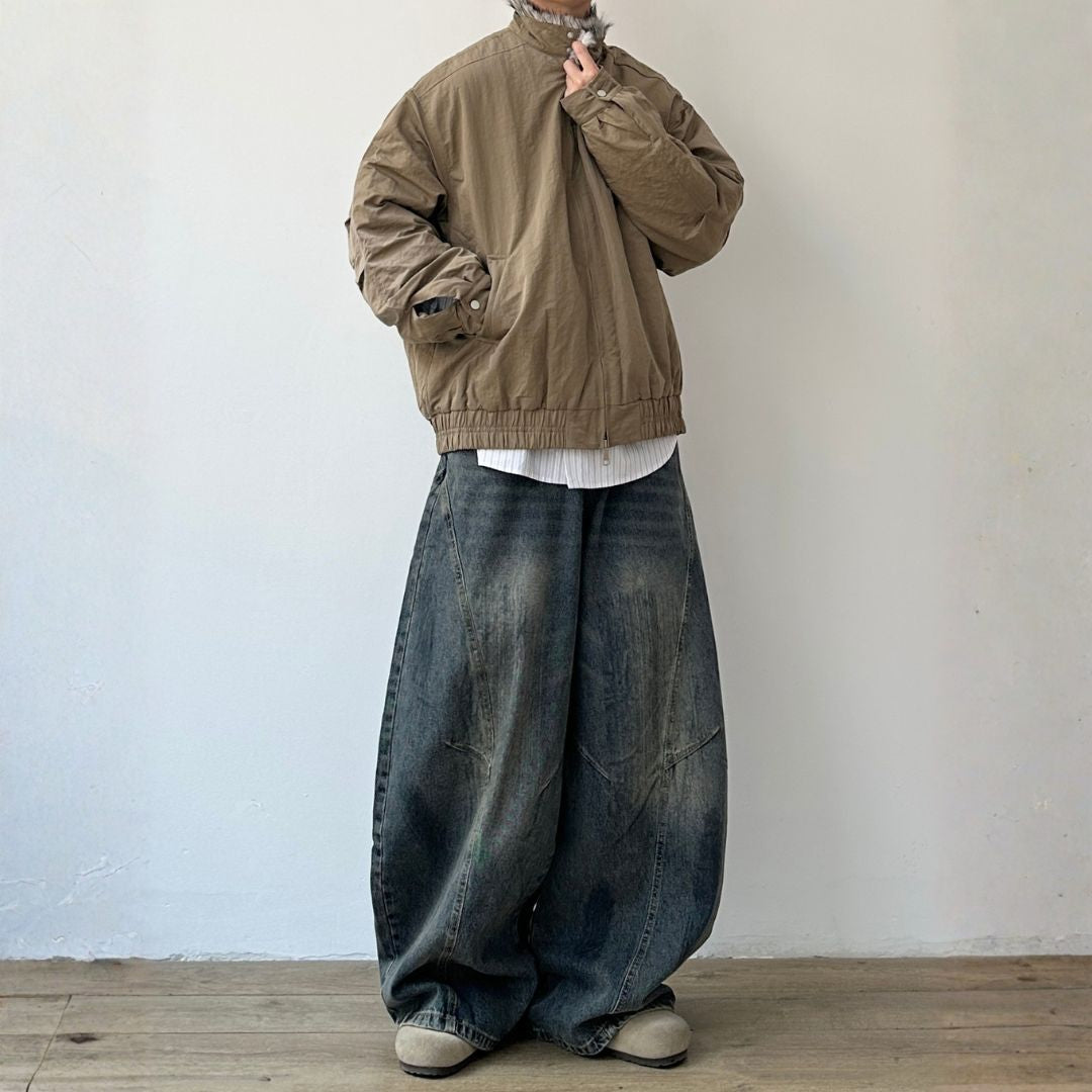 ゆったりした身幅にスタンドカラーを合わせた、存在感あるシルエットのジャケットです。