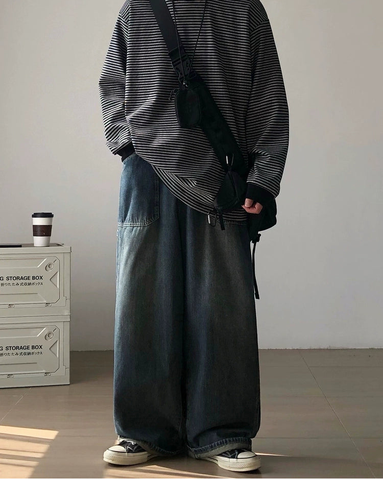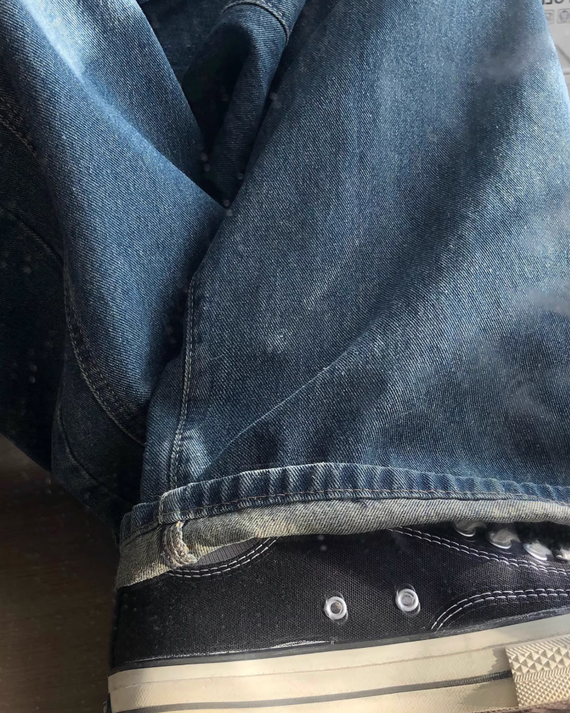 深めの股上と極太のワイドシルエットが印象的なデニムパンツです。