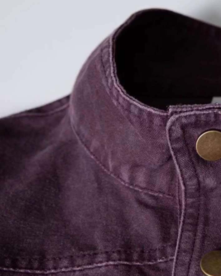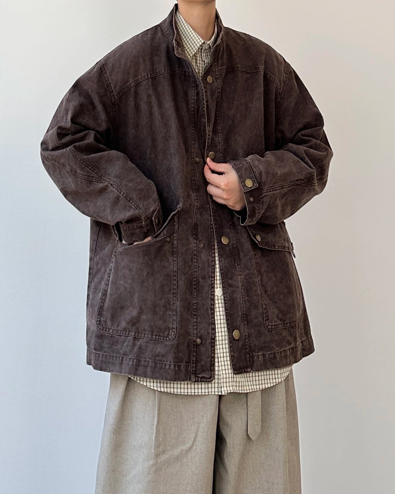 ゆったりとしたボックスシルエットに、スタンドカラーと大きめポケットを配したジャケットです。