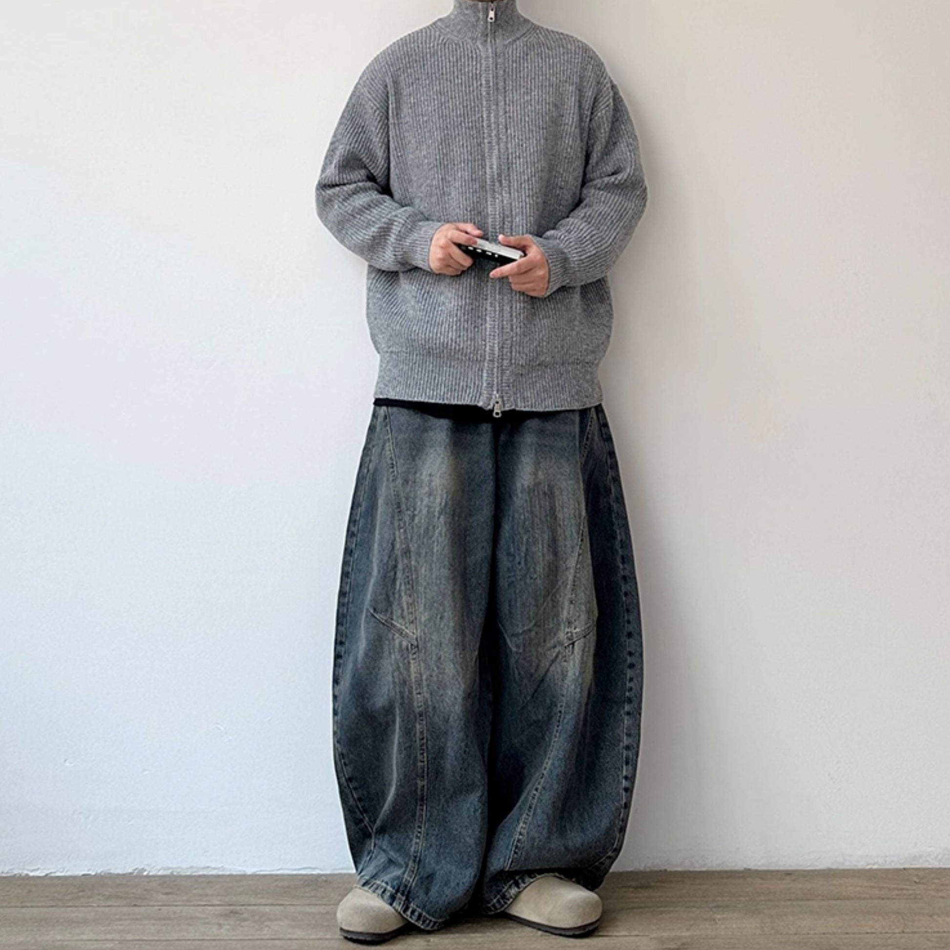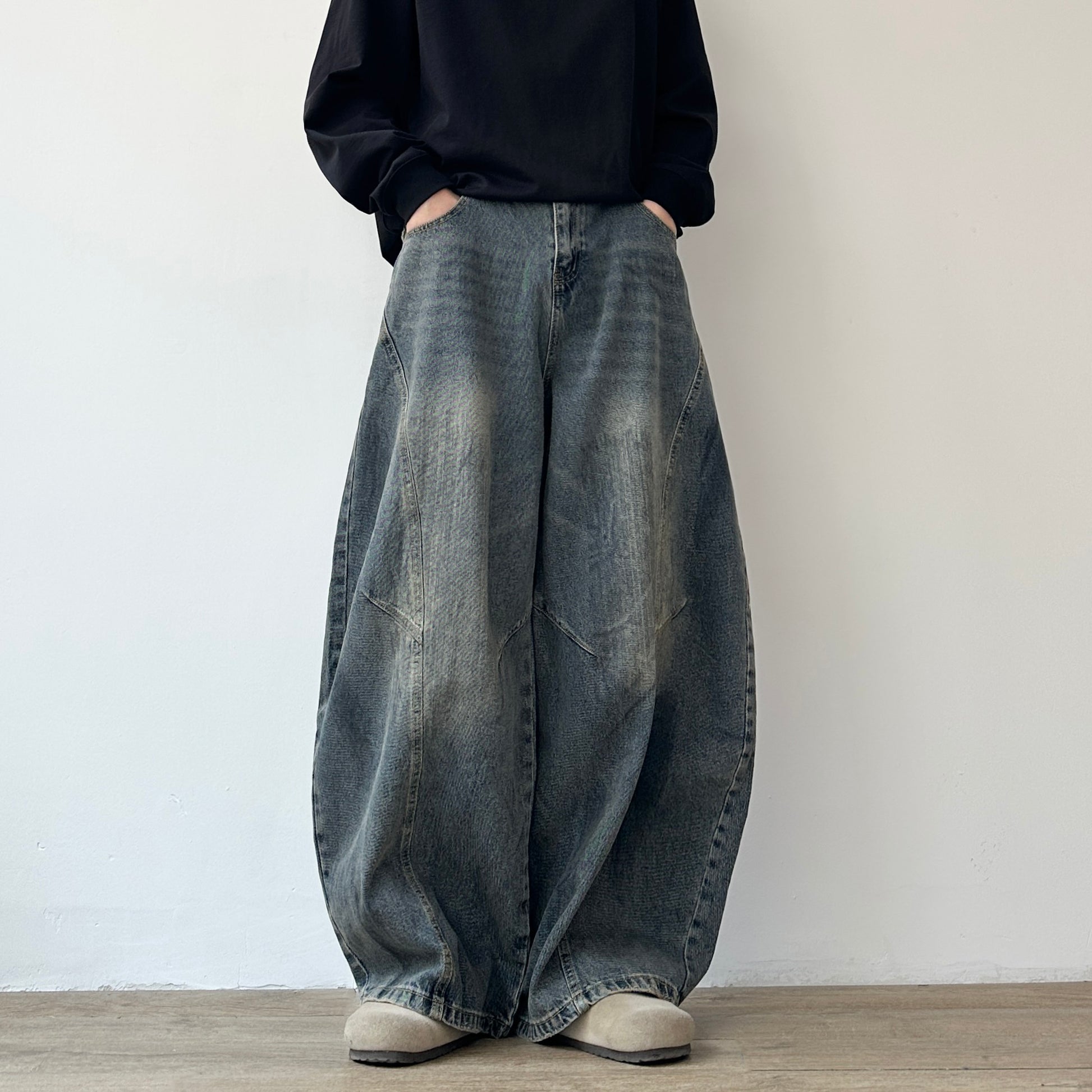 立体的なボリュームシルエットが際立つワイドデニムパンツです。