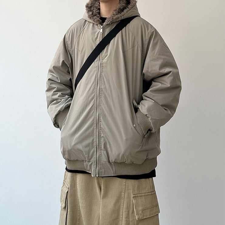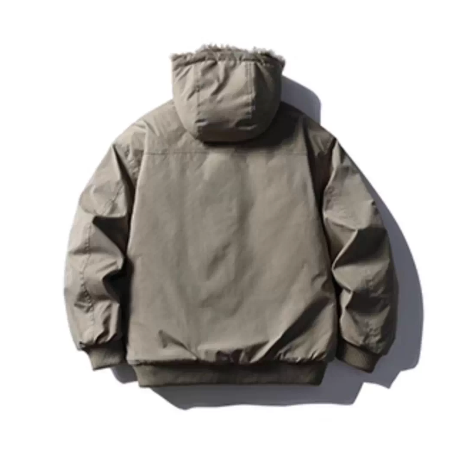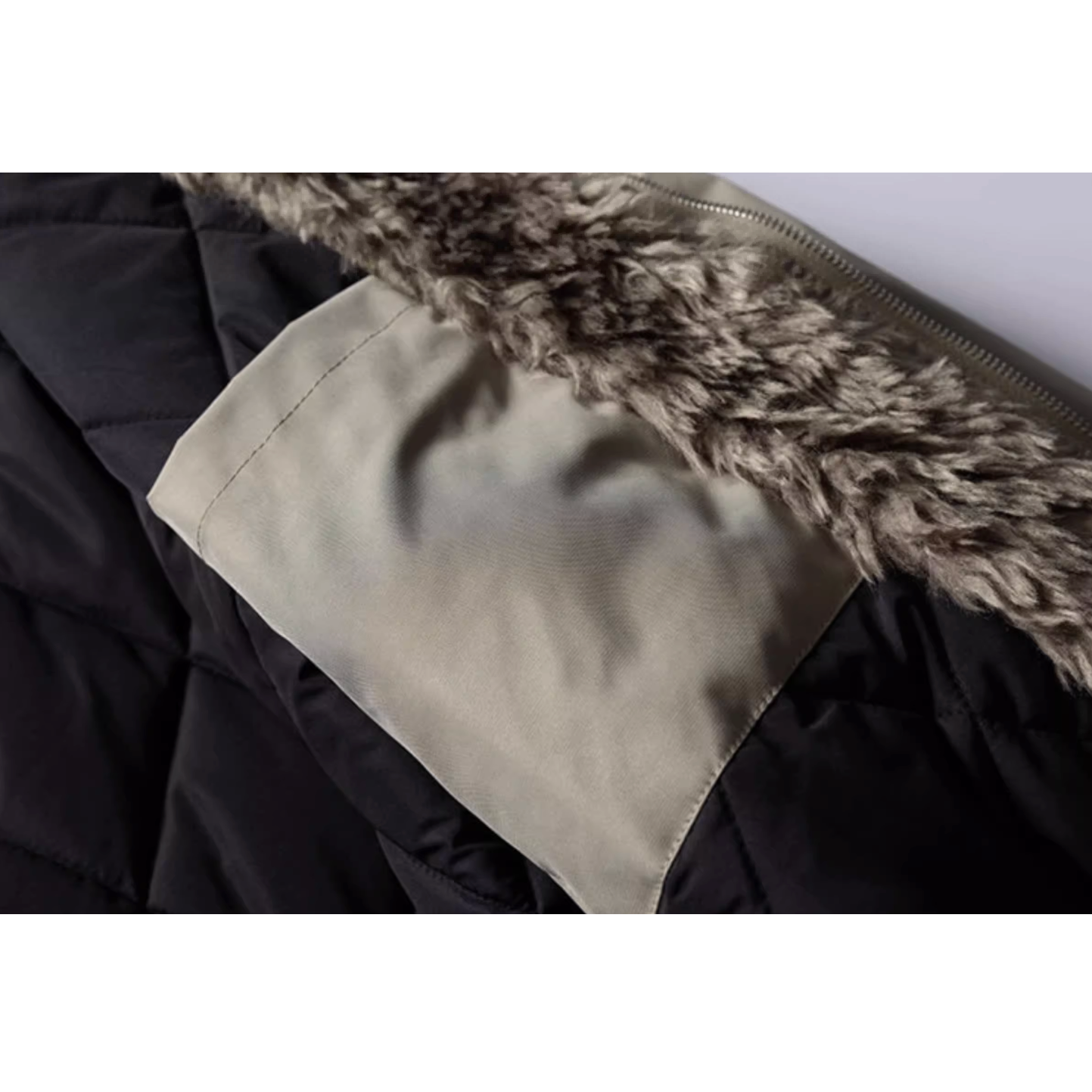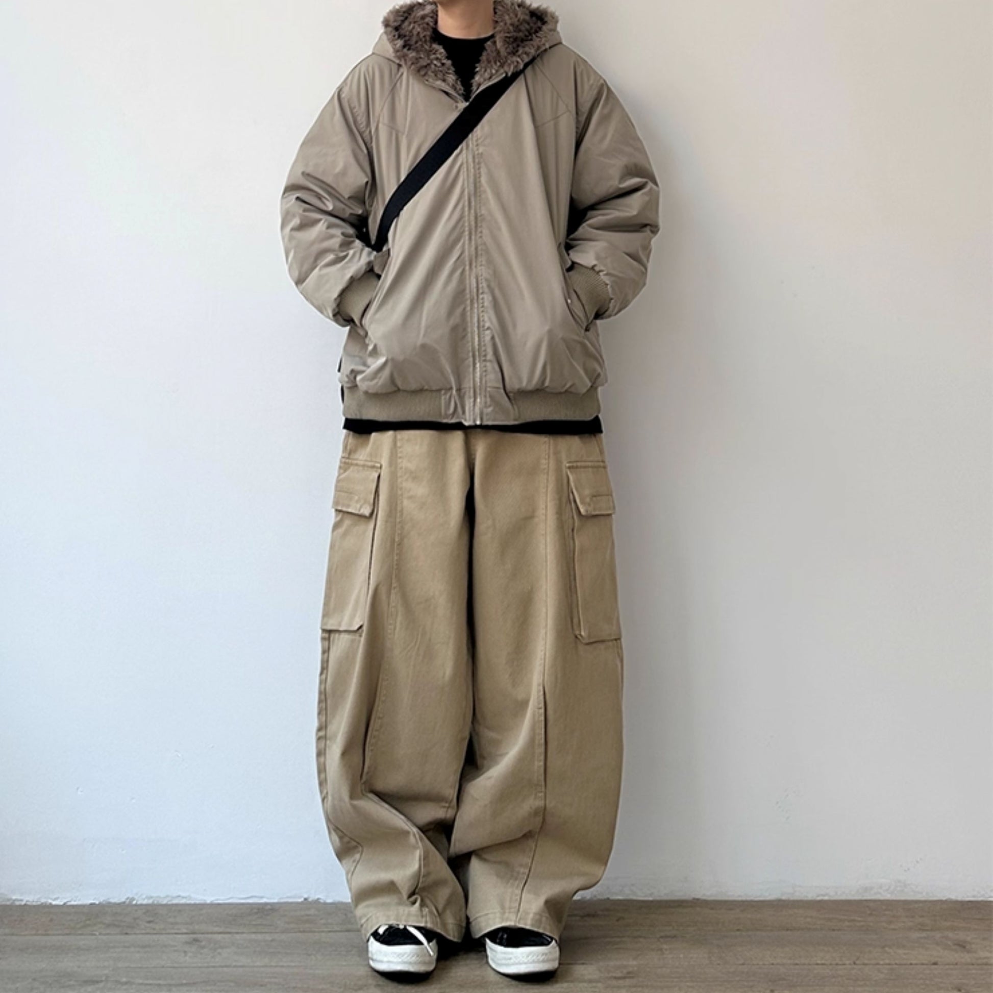 ファーフードの質感が季節感を添えつつ、ラフさと落ち着きのバランスを保ちます。