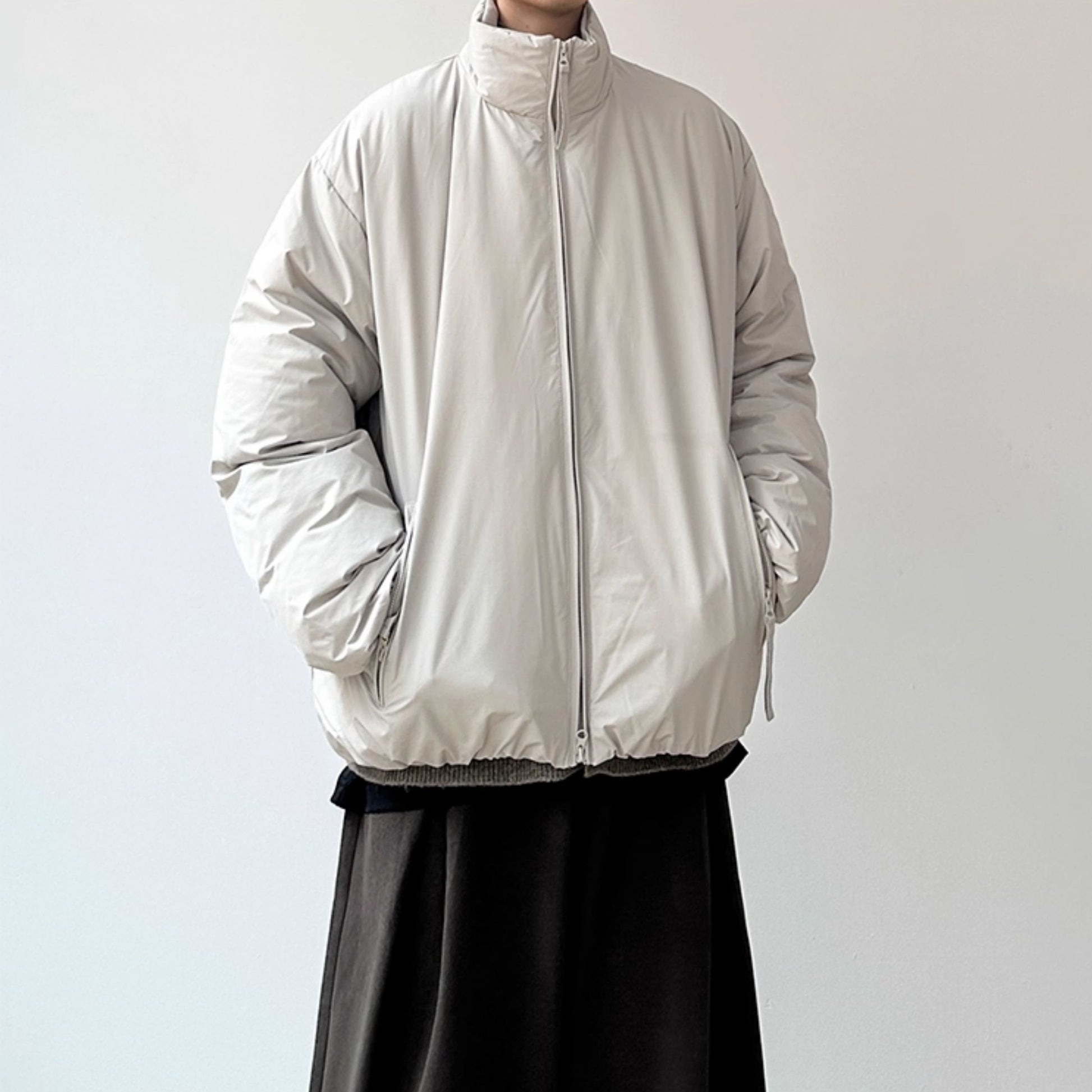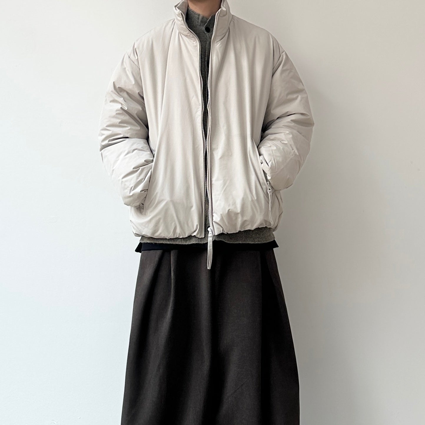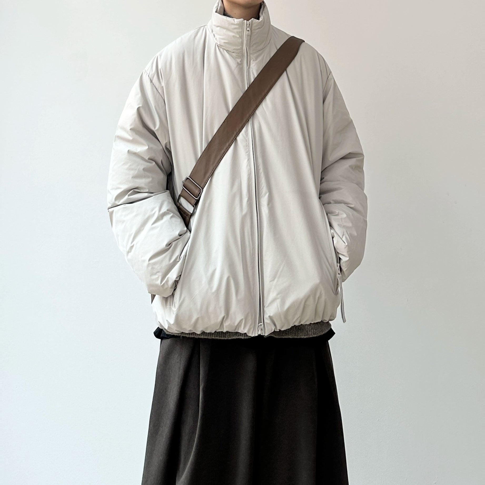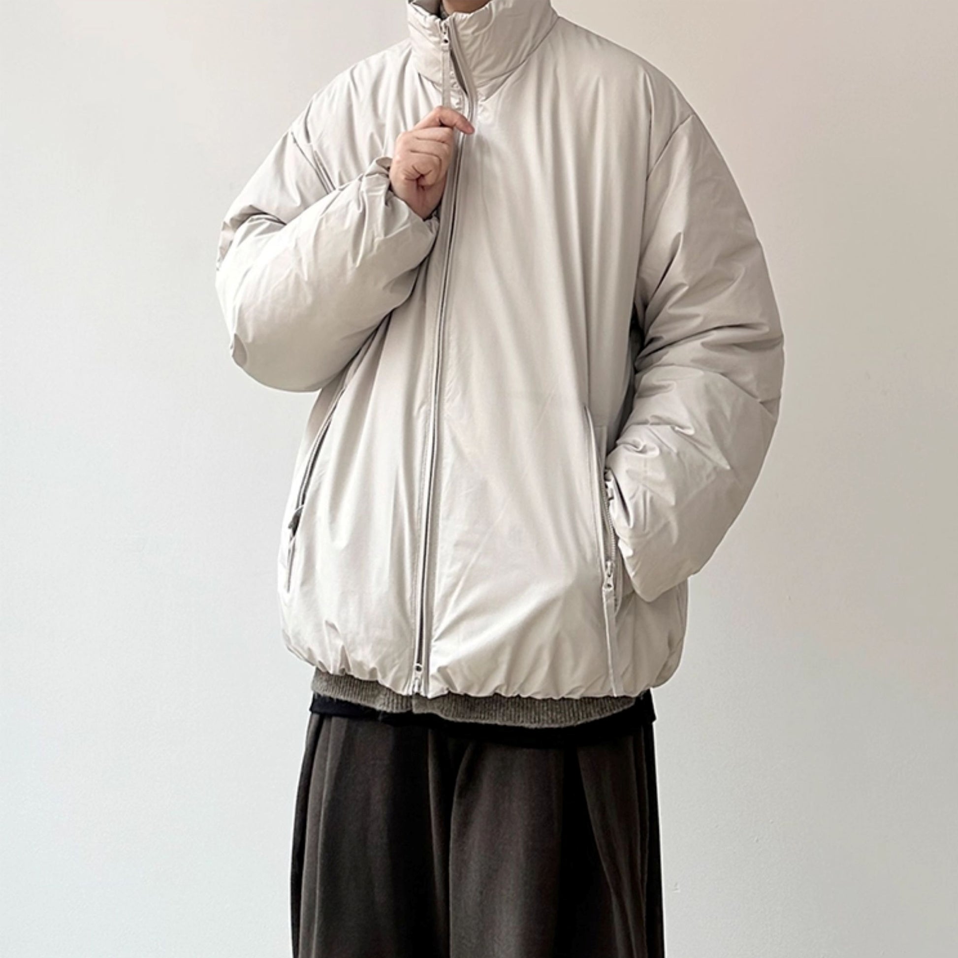 丸みのあるフォルムと高めのネックラインが印象的な中綿ジャケットです。