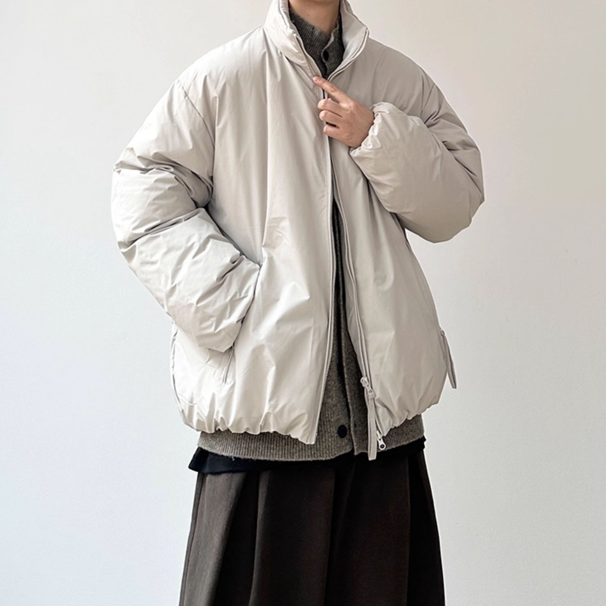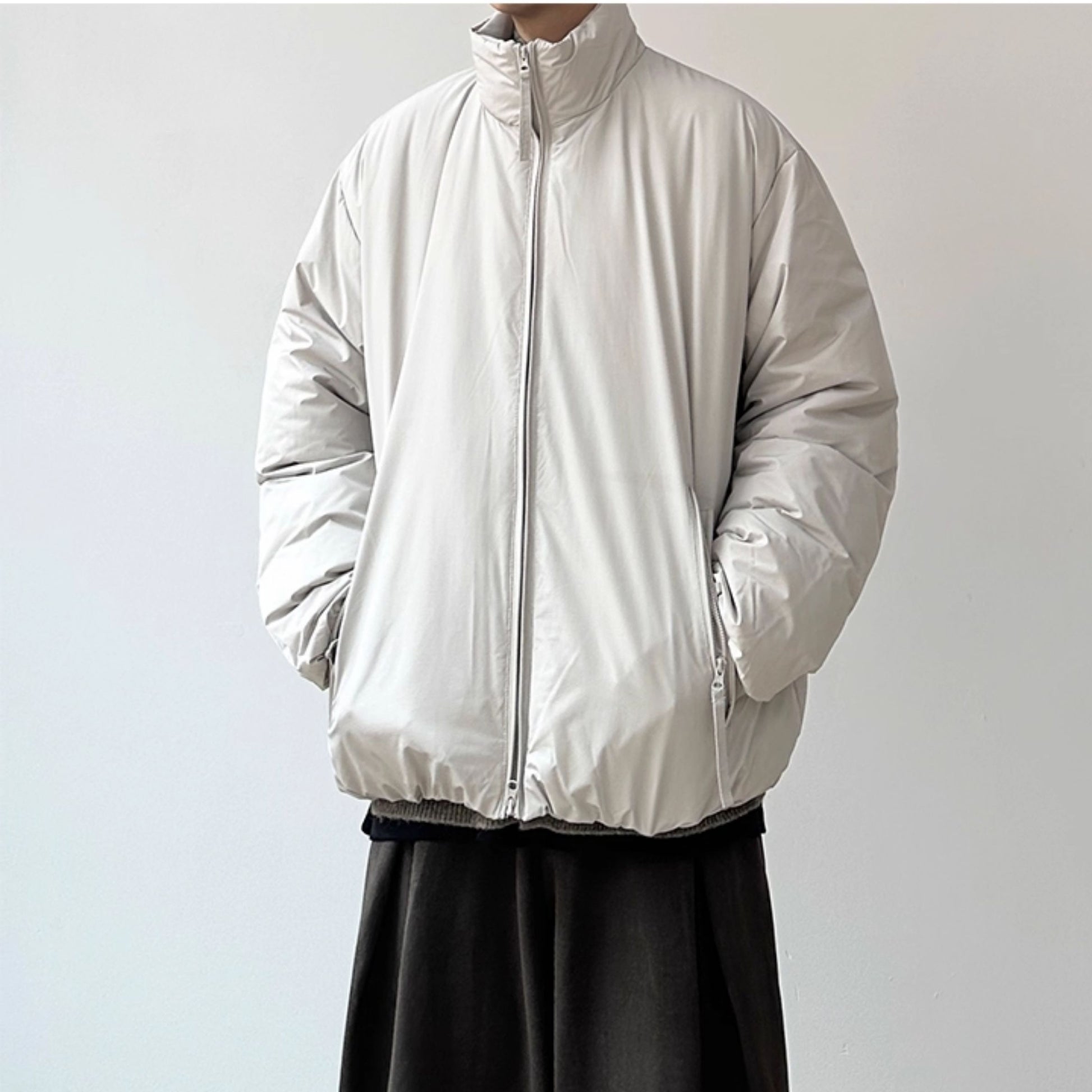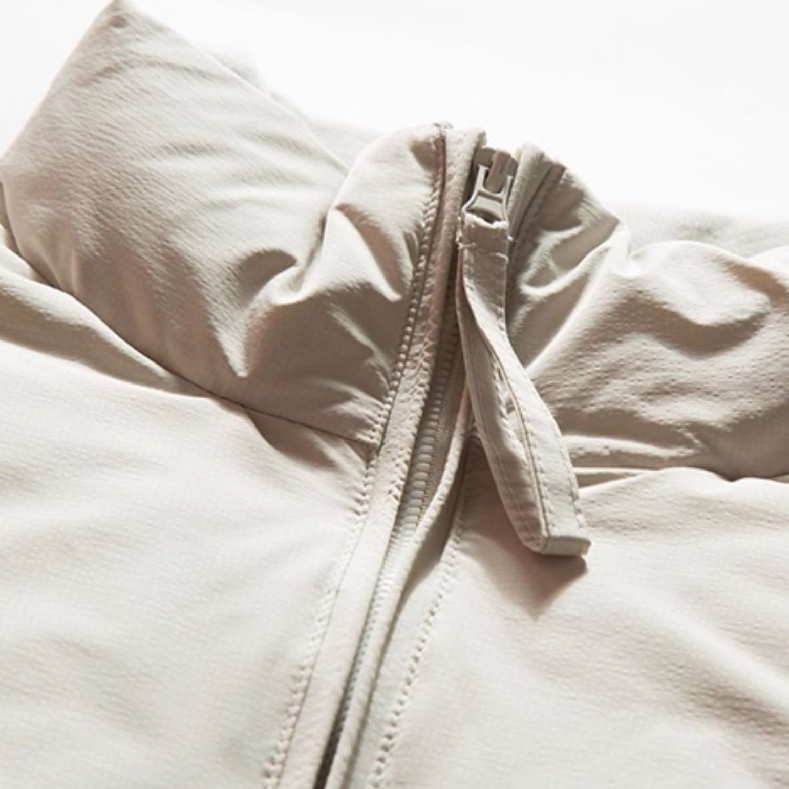 丸みのあるフォルムと高めのネックラインが印象的な中綿ジャケットです。
