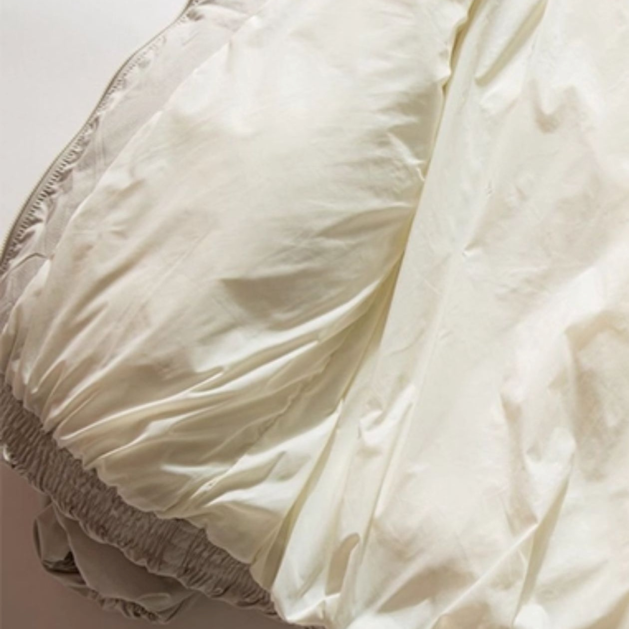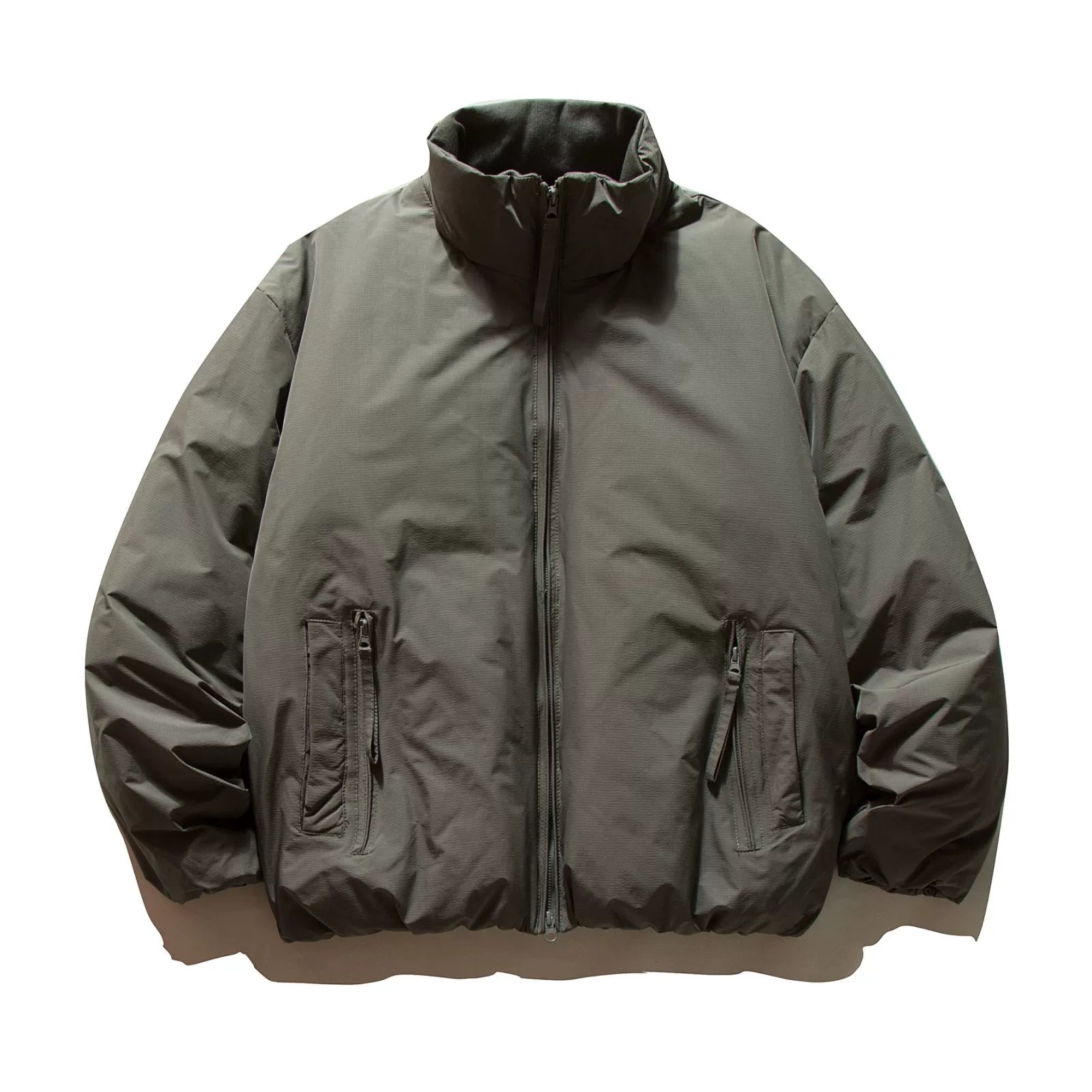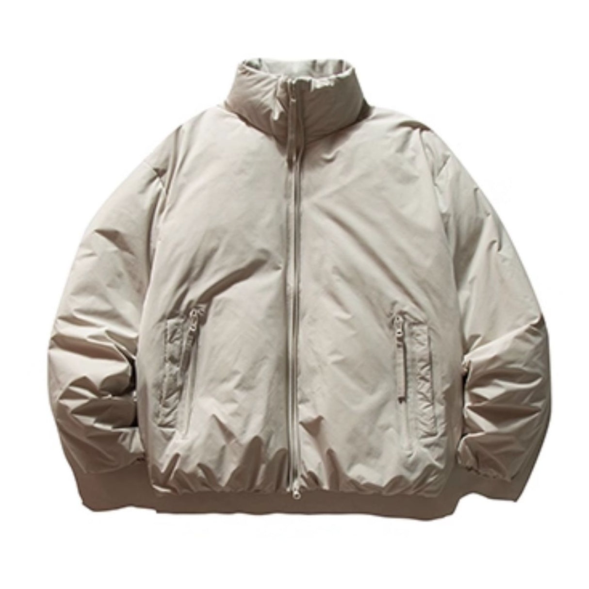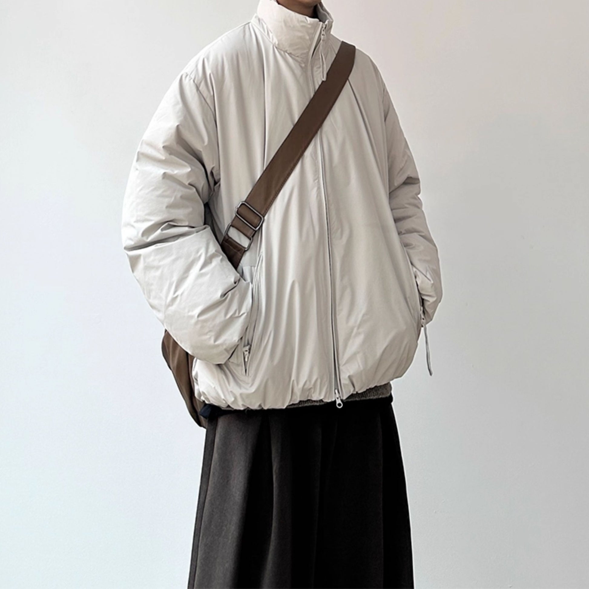 丸みのあるフォルムと高めのネックラインが印象的な中綿ジャケットです。