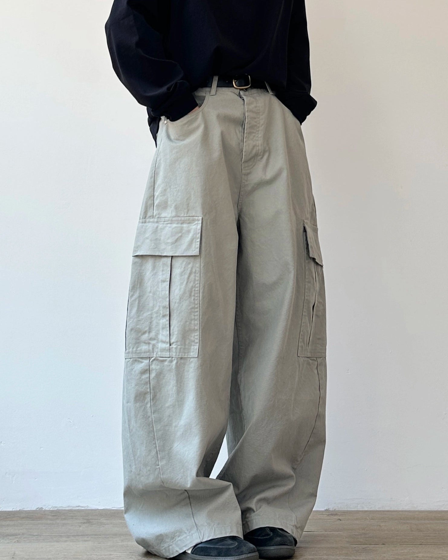 大きめフラップポケットを配したワイドシルエットのカーゴパンツです。
